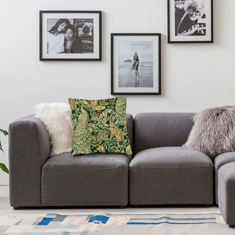 Роскошный чехол для дивана с изображением павлина и лисы Вильяма Морриса мягкий чехол для подушки с изображением животного леса украшение для спальни