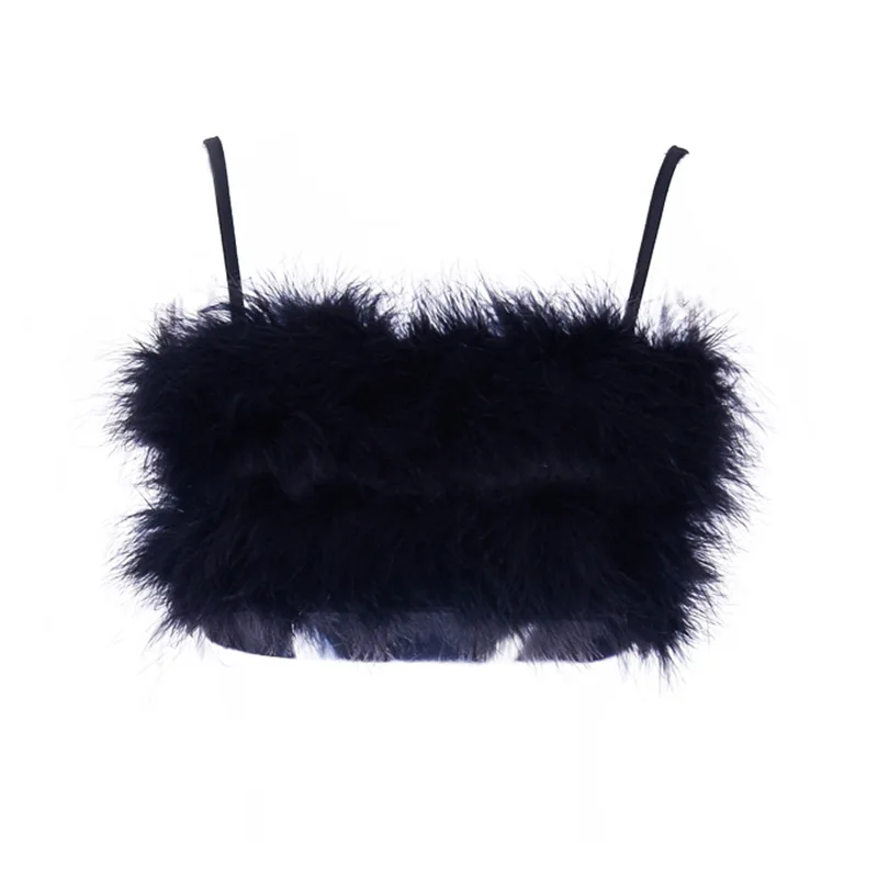 Летний модный женский пикантный топ на бретельках с имитацией меха,...