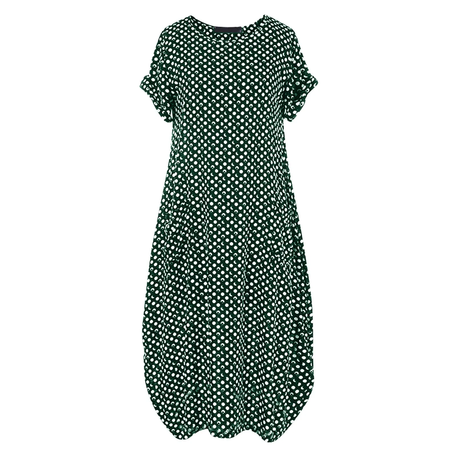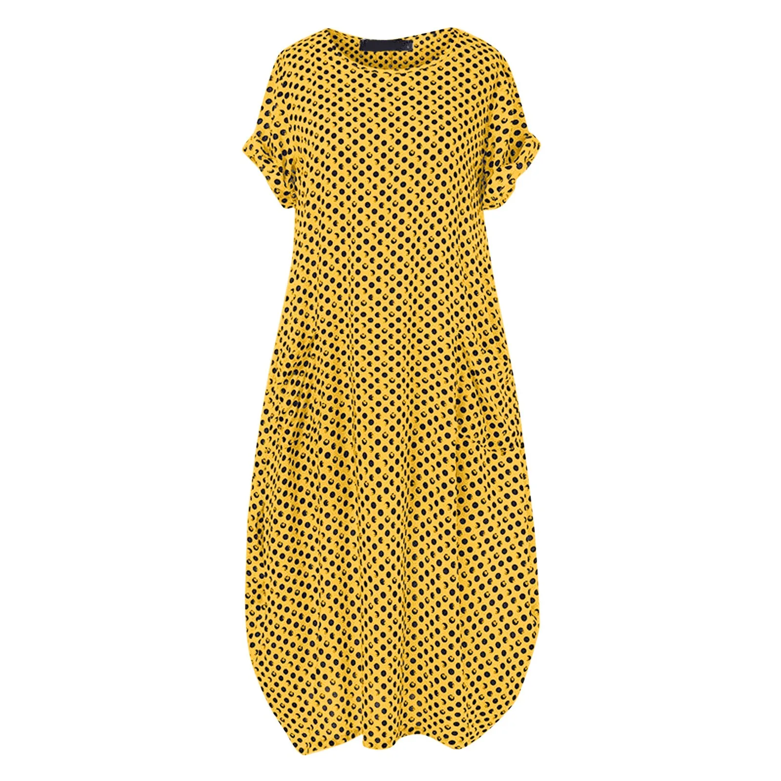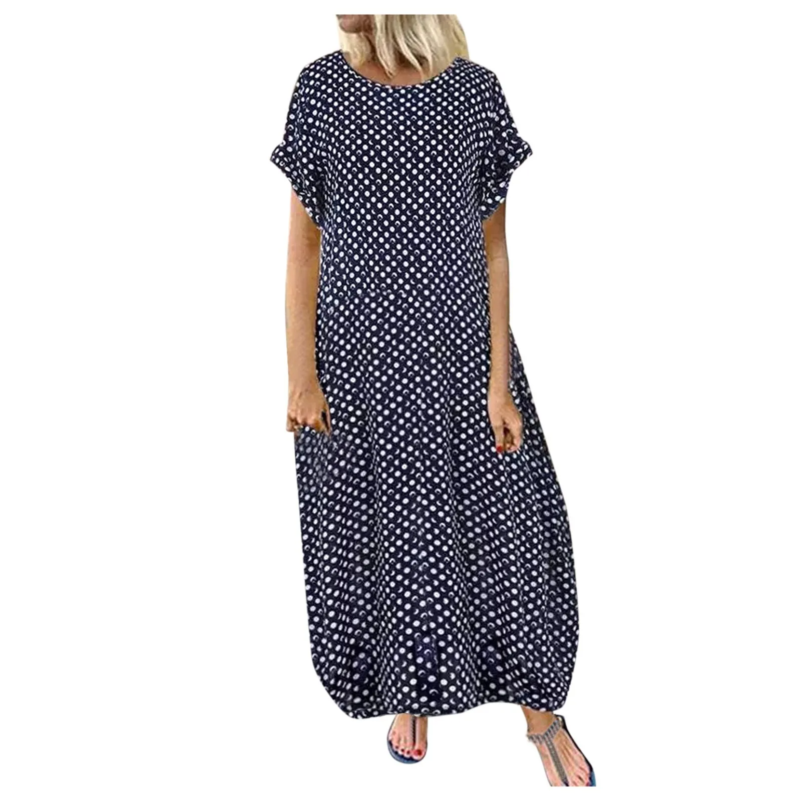 Женское Повседневное платье макси в горошек с коротким рукавом и круглым вырезом