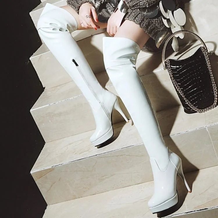 Женские ботинки для танцев на шесте, женские танцевальные сапоги, сексуальные ботинки для ночного клуба на очень высоком каблуке, Кожаные эластичные сапоги до колена с острым носком, танцевальные трубы из меди