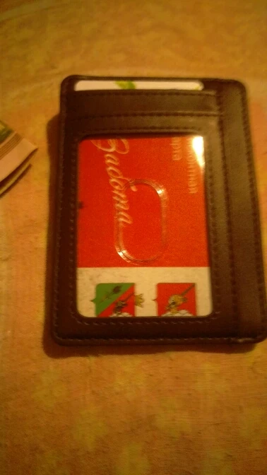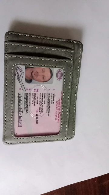 Заказ пришёл вовремя.Не настоящая кожа,качественный и крепкий кожзам или тип того. R-fid функция работает,сканер карточки не видит. Рекомендую к приобретению