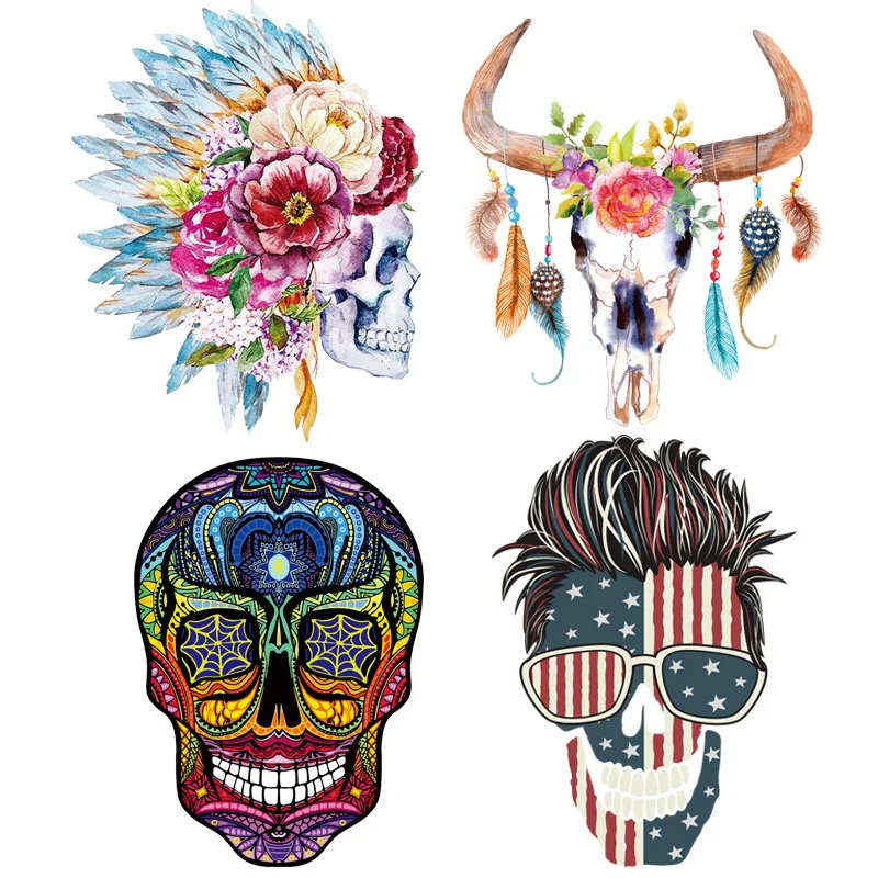 Термонаклейки с большим изображением черепа, термотрансферные индив...