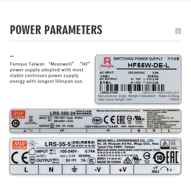 Известный тайваньский источник питания «Meanwell» «HF» с наиболее стабильным непрерывным источником энергии с длительным сроком службы.