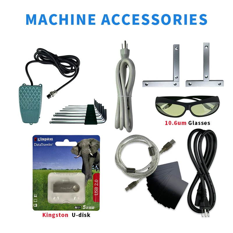 Мы поставляем программное обеспечение с лучшим USB Kingston для вашей безопасности данных.Запасные части для резервного копирования, такие как кнопка резервного копирования для аварийного использования.Позиционирование стержней для легкого определения правильного положения для ваших гравировальных изделий.