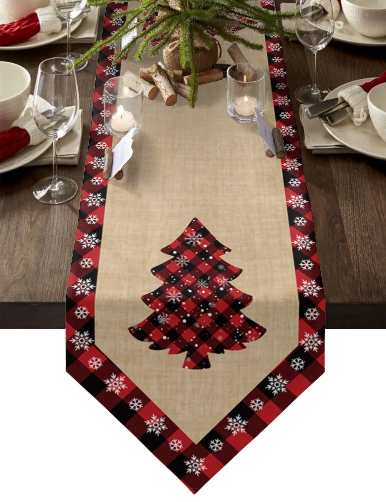 Рождественская зимняя Рождественская елка красная черная клетчатая настольная дорожка для дома Рождественские новогодние украшения
