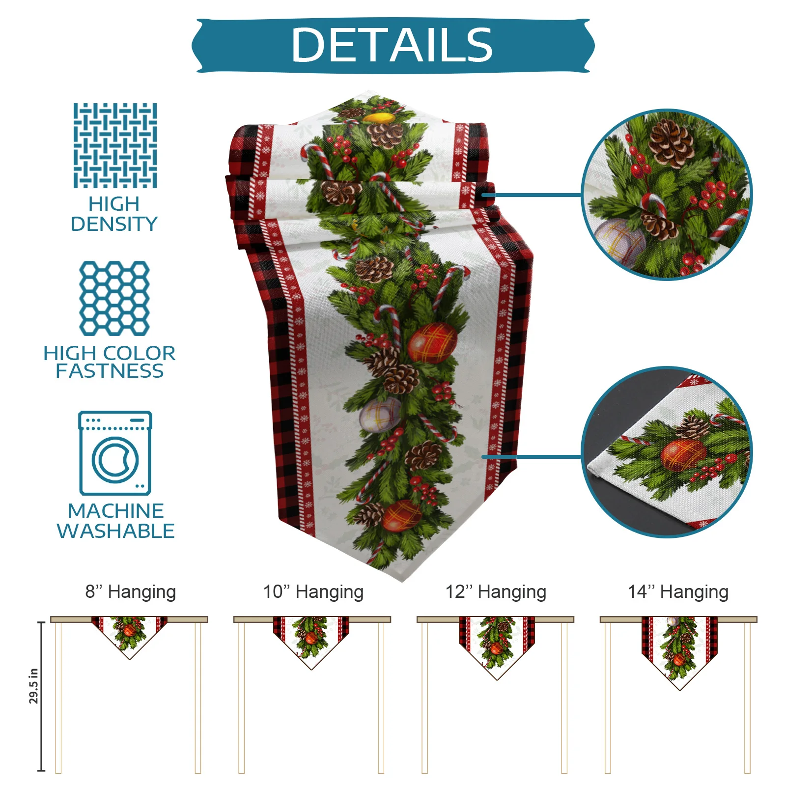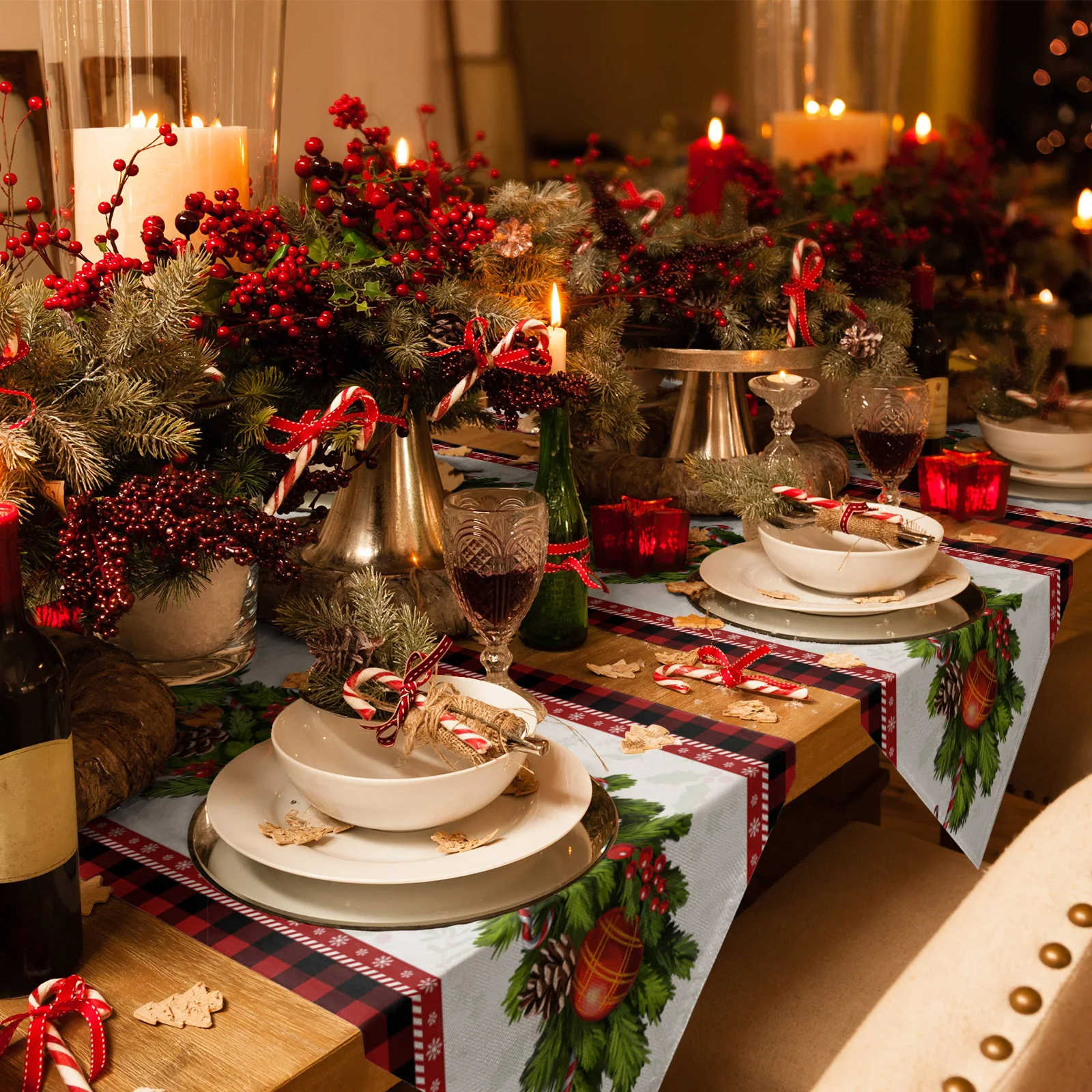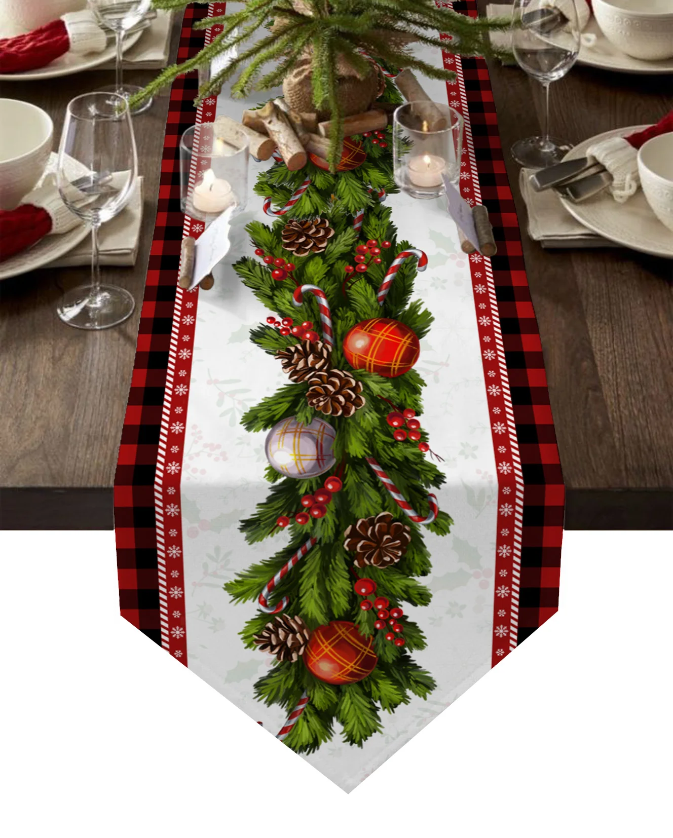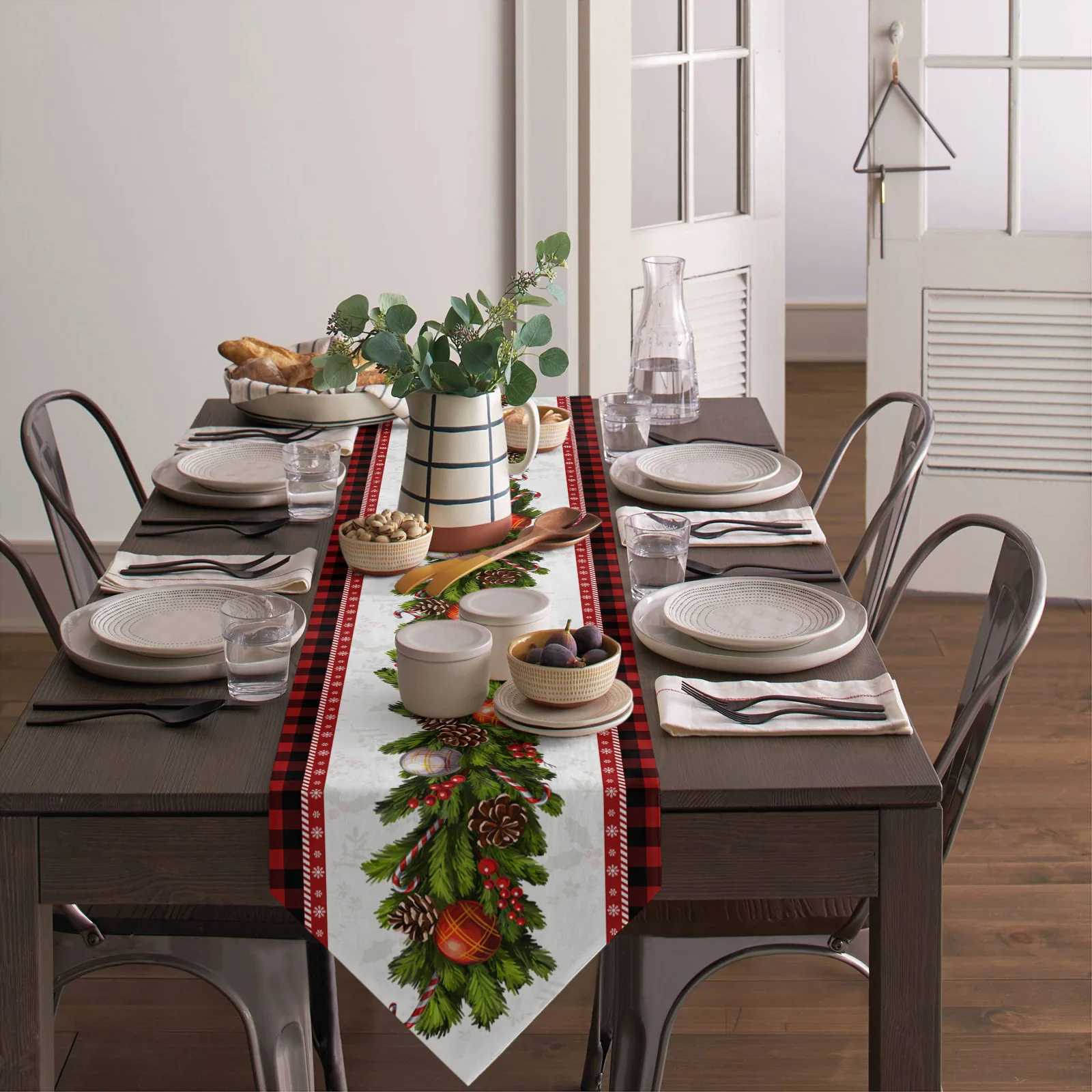 Рождественская фотография, сосновые конусы, красная клетчатая настольная дорожка для дома, новогодние украшения
