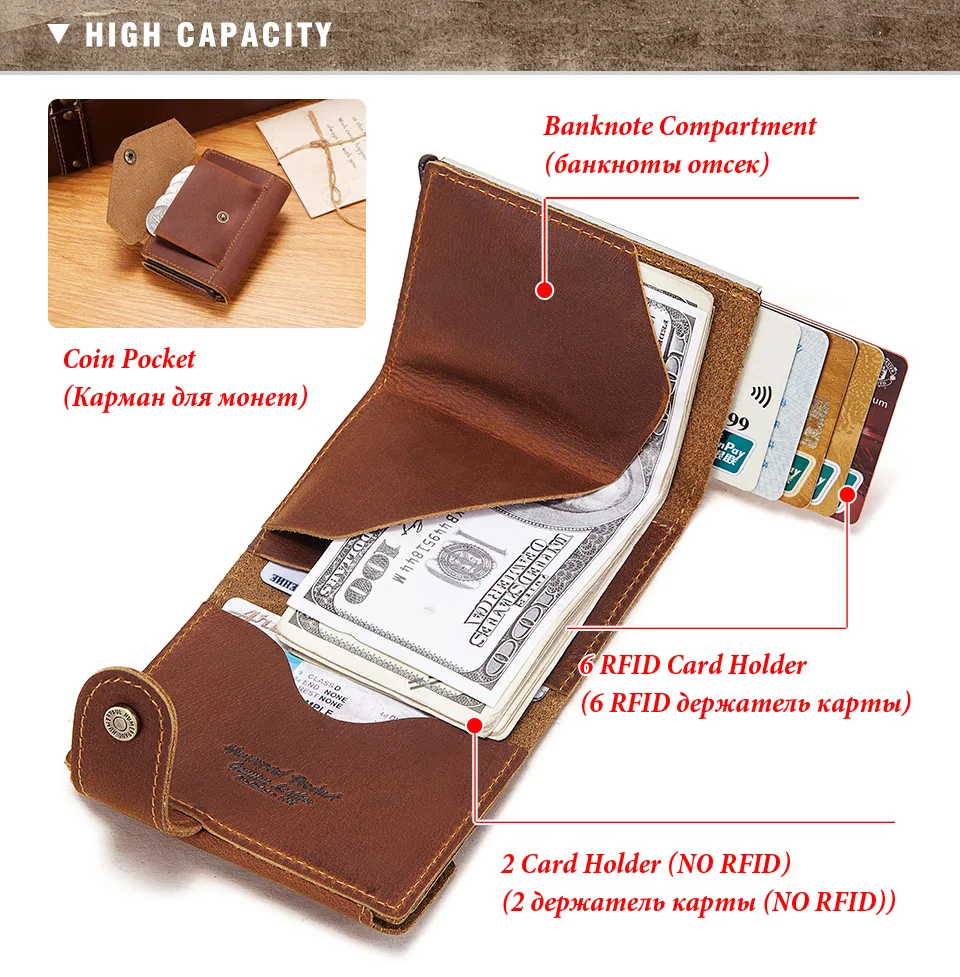 Кошелек мужской из натуральной кожи с отделением для кредитных карт и застежкой