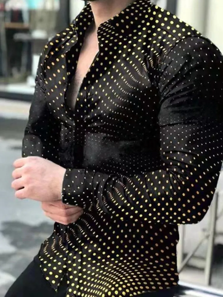 Мужская Повседневная рубашка на пуговицах, рубашка с отложным воротником и принтом, в горошек с градиентным переходом цветов и длинными рукавами, весна-осень 2021