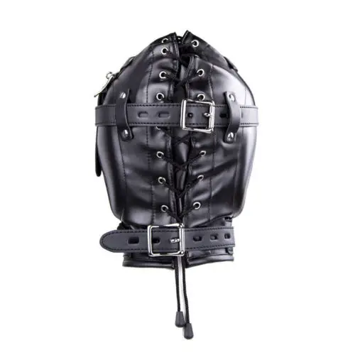 Кожаный головной убор Фетиш маска бандаж капюшон сексуальный ведомы...