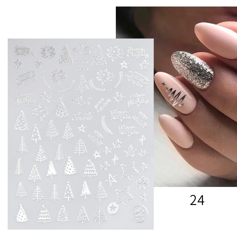 3D Рождественские декоративные наклейки для ногтей, блестящие золотые серебряные белые красочные блестящие зеркальные зимние Слайдеры для ногтей со снежинками