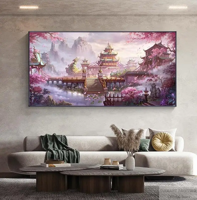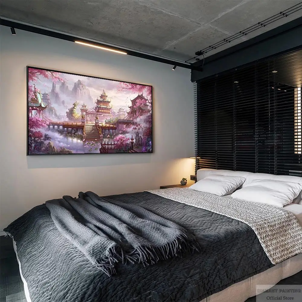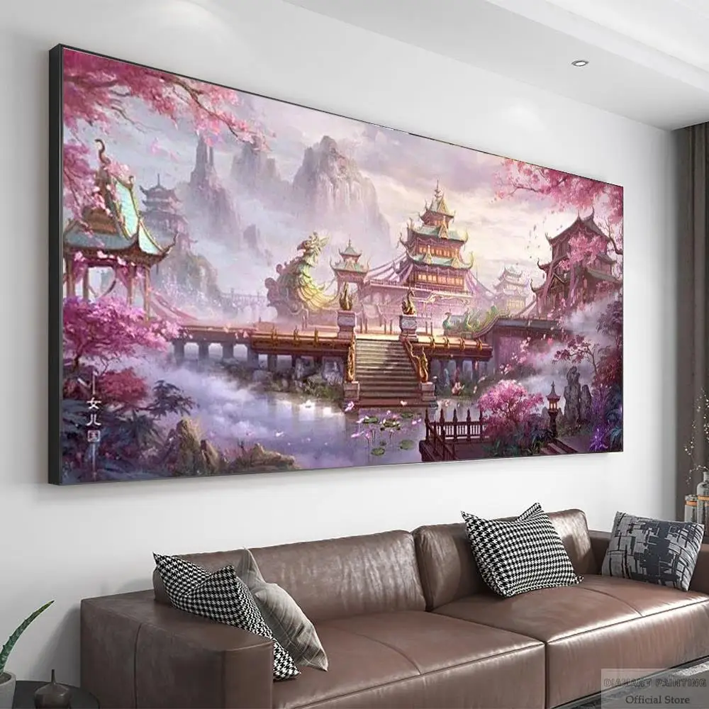Алмазная 5D Вышивка сделай сам, полноразмернаякруглая мозаика с изображением дома, гор, сакуры, цветов, ландшафта, Настенный декор, искусство