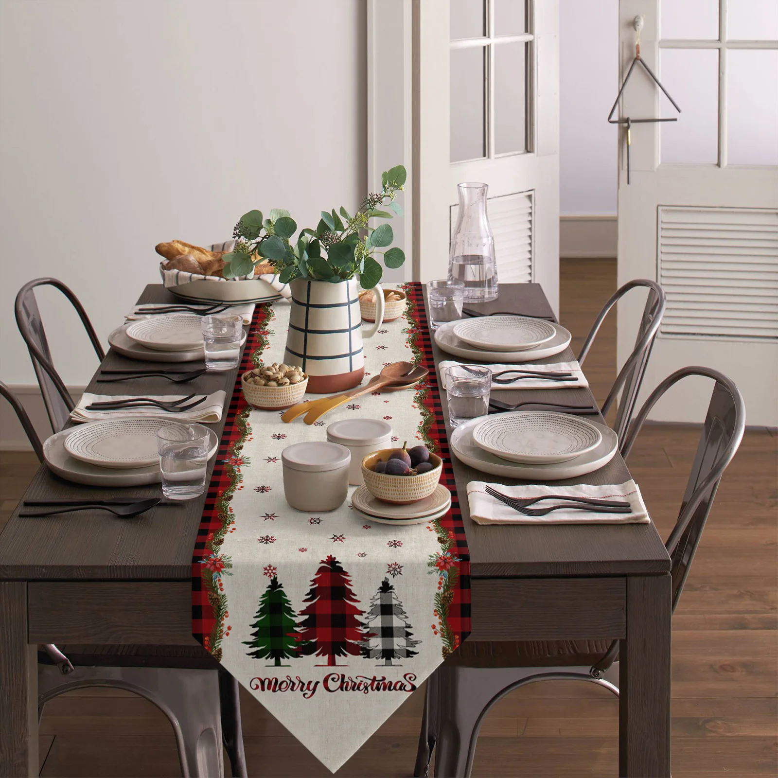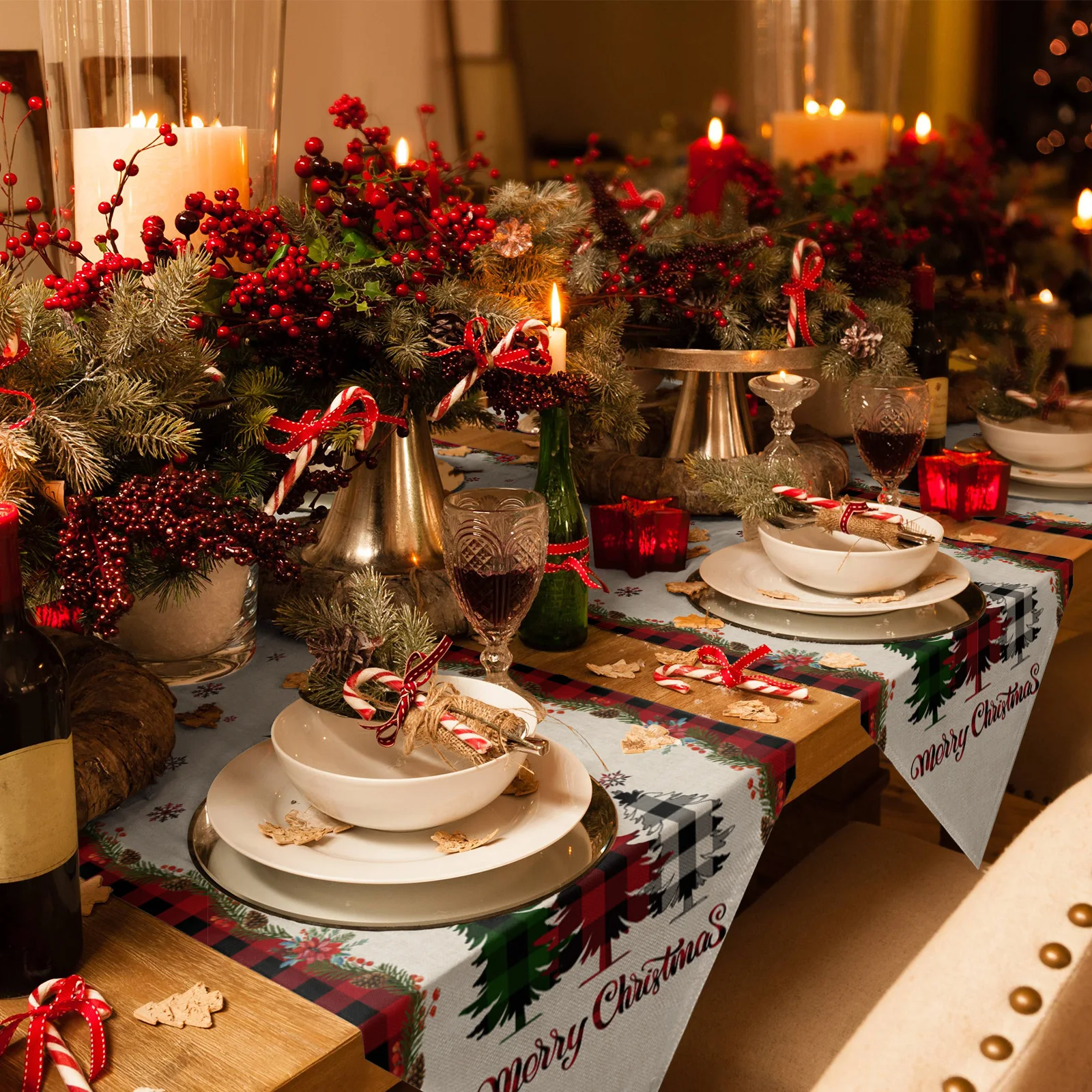 Рождественская елка со снежинками, красная решетчатая скатерть для стола, свадебная скатерть, Рождественское украшение для дома
