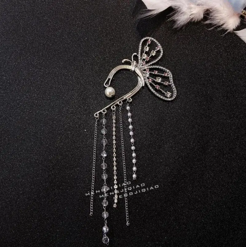 Серьги Стразы с длинными кисточками в Корейском стиле, серьги-клипс...
