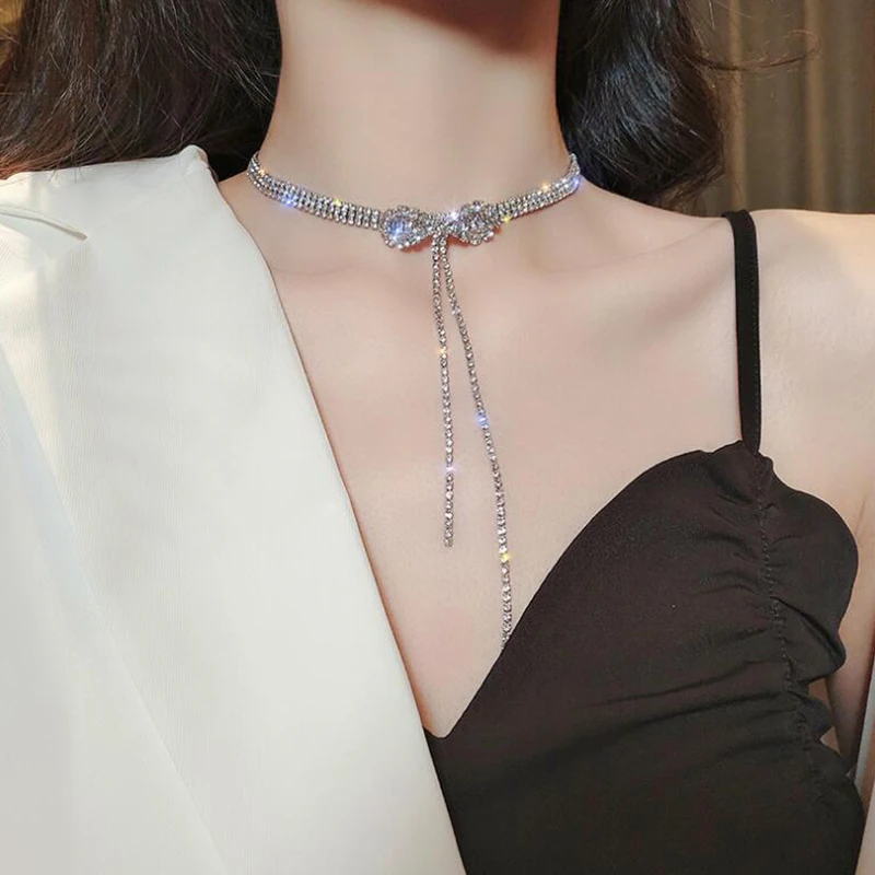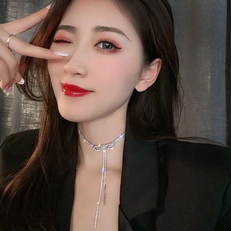 2021 новый тренд, цепочка с бантом на шее, сексуальное длинное колье с кисточками для женщин, корейский темперамент, модное шикарное короткое ожерелье, ювелирное изделие