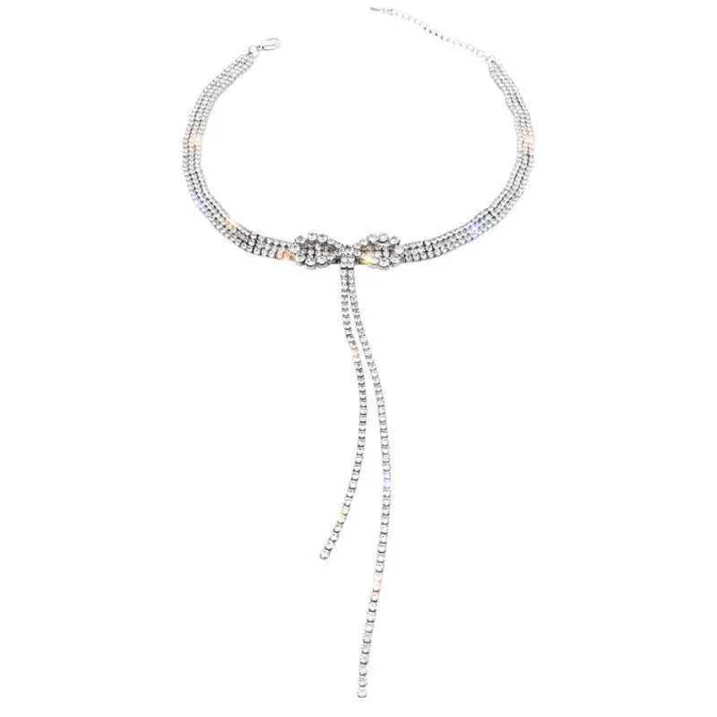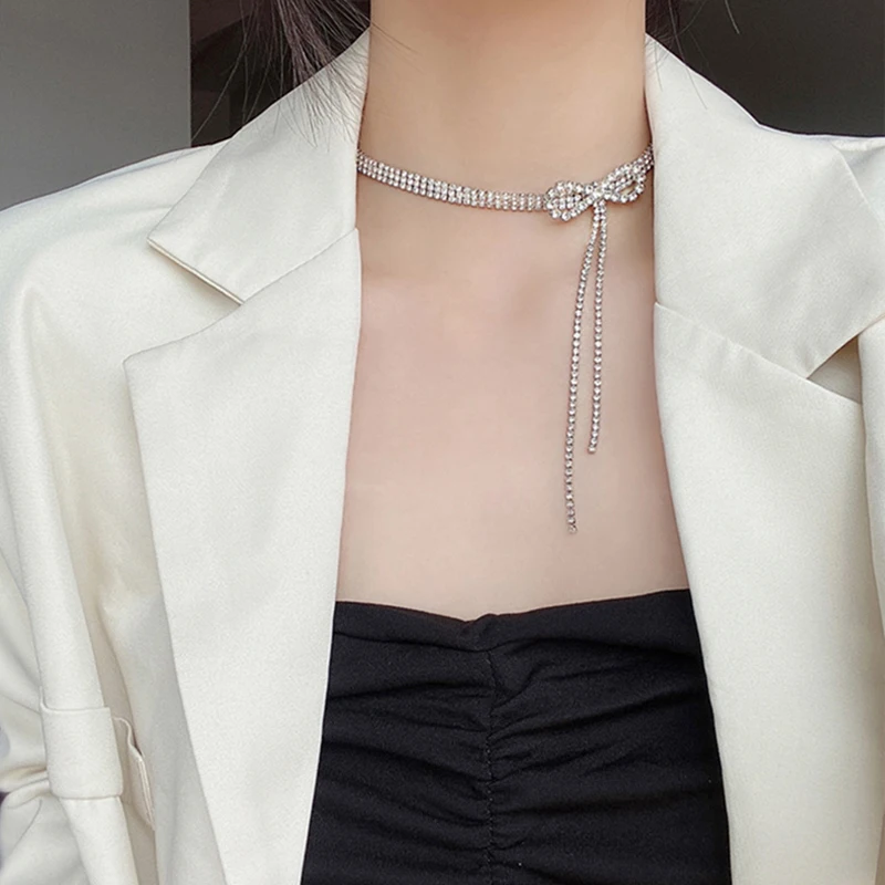 Новинка 2021, роскошное ожерелье-чокер с бантом и кристаллами для ж...