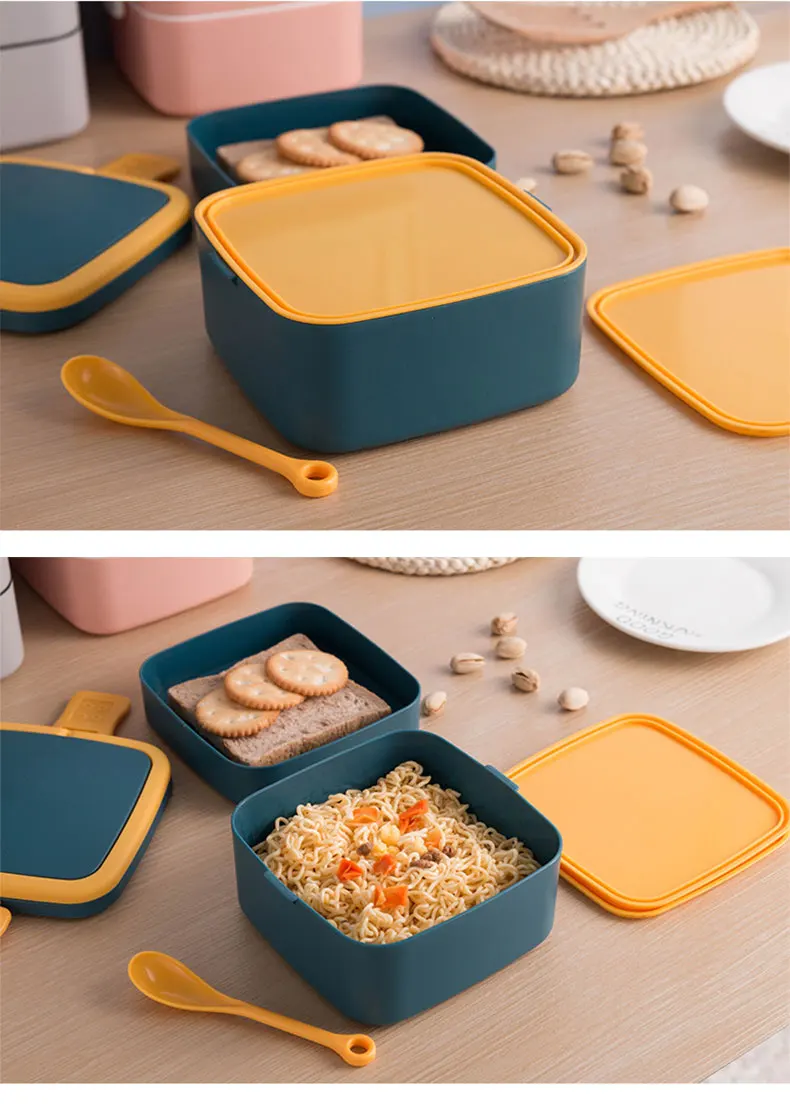 Двухслойный Портативный Ланч-бокс с крышкой, Ланч-бокс для офиса, Р...