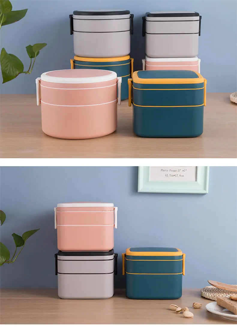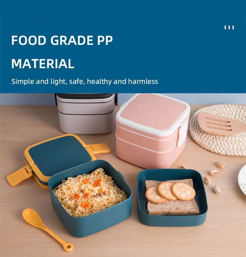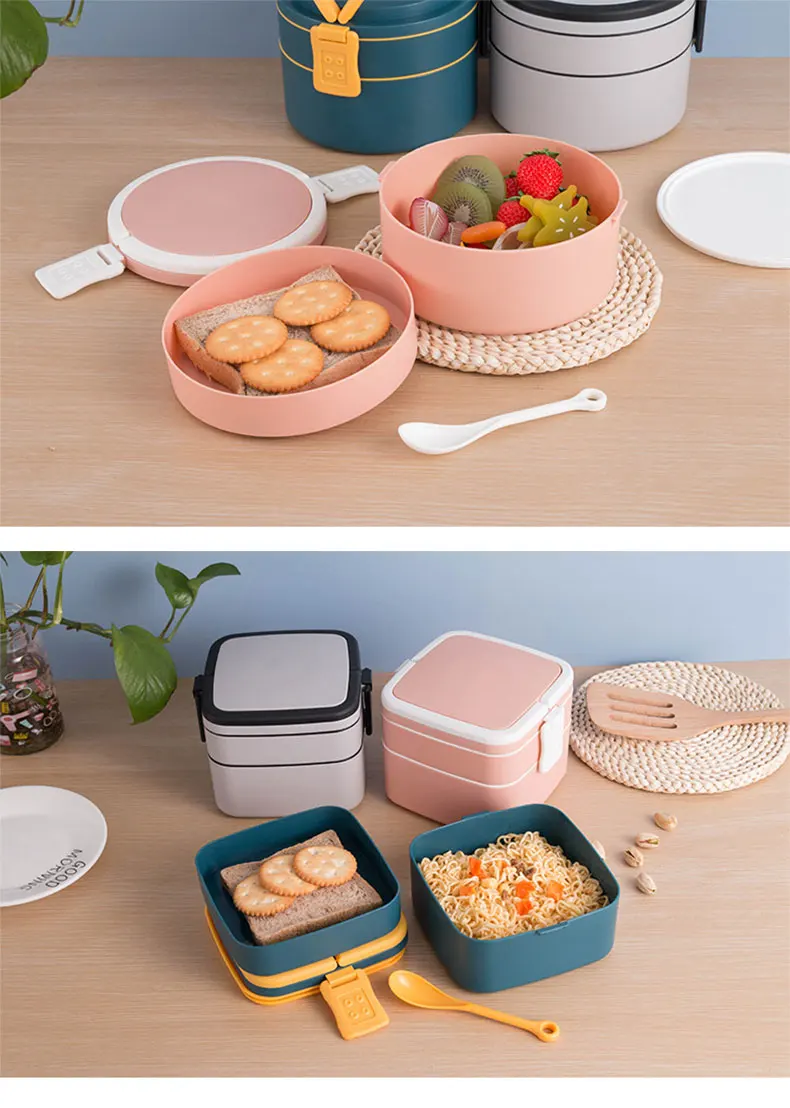 Двухслойный Портативный Ланч-бокс с крышкой, Ланч-бокс бэнто, Ланч-...