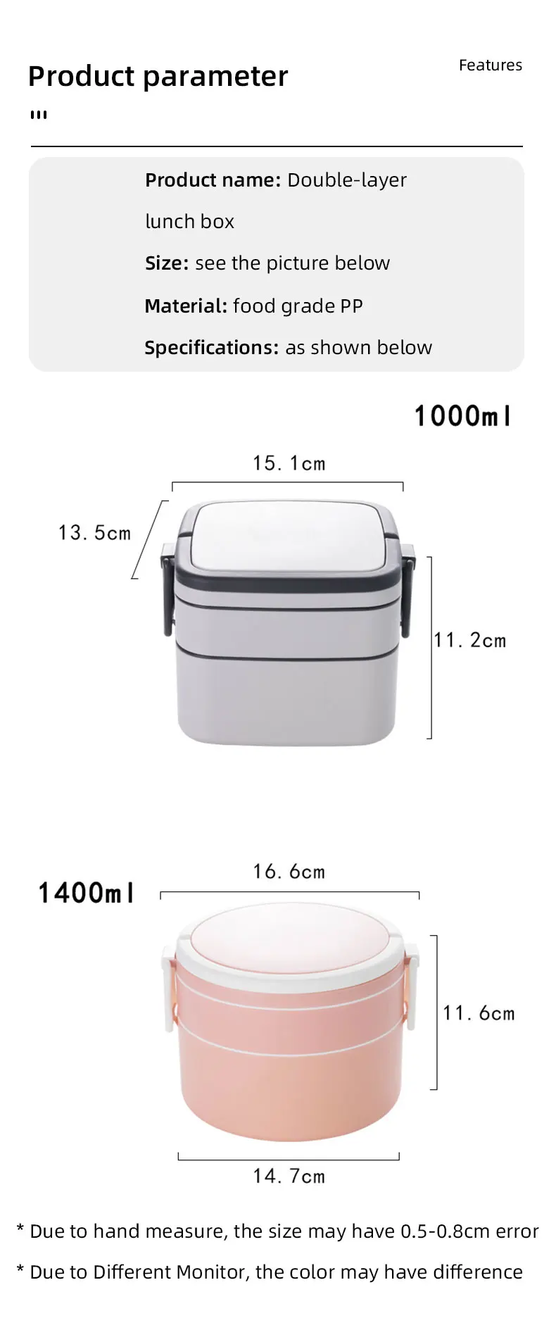 Портативный 2-х Уровневый здоровый Ланч-бокс объемом 1100 мл, станд...