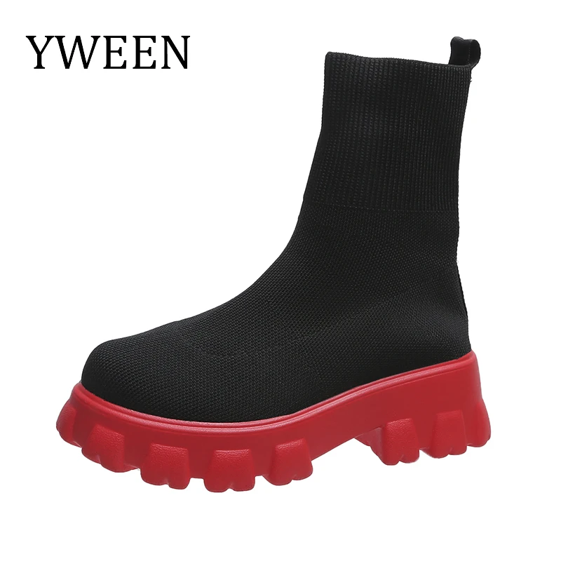 Новинка, осенне-зимние кроссовки-носки YWEEN, женские повседневные кроссовки на толстой подошве, большие размеры, красные вязаные короткие юбки