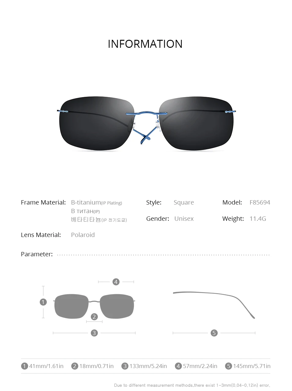 FONEX Мужские и женские очки без винтов, титановые ультралегкие квадратные поляризационные солнцезащитные очки без оправы, модель F85694 в Корейском стиле, 2022