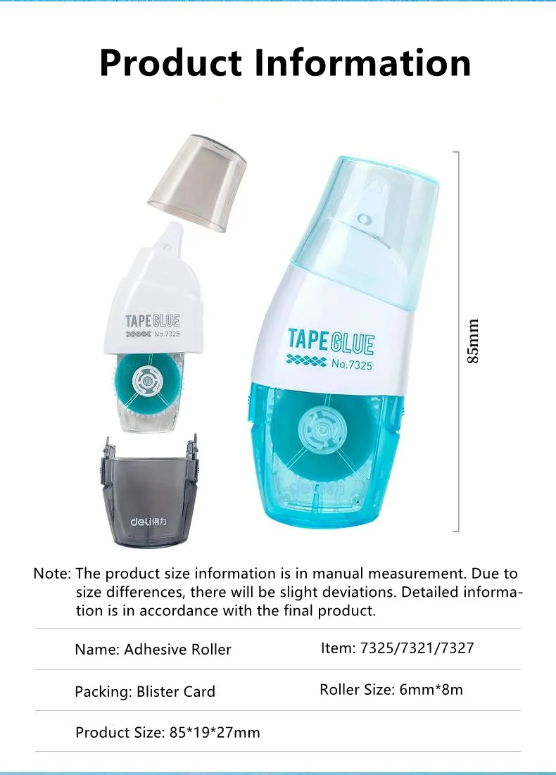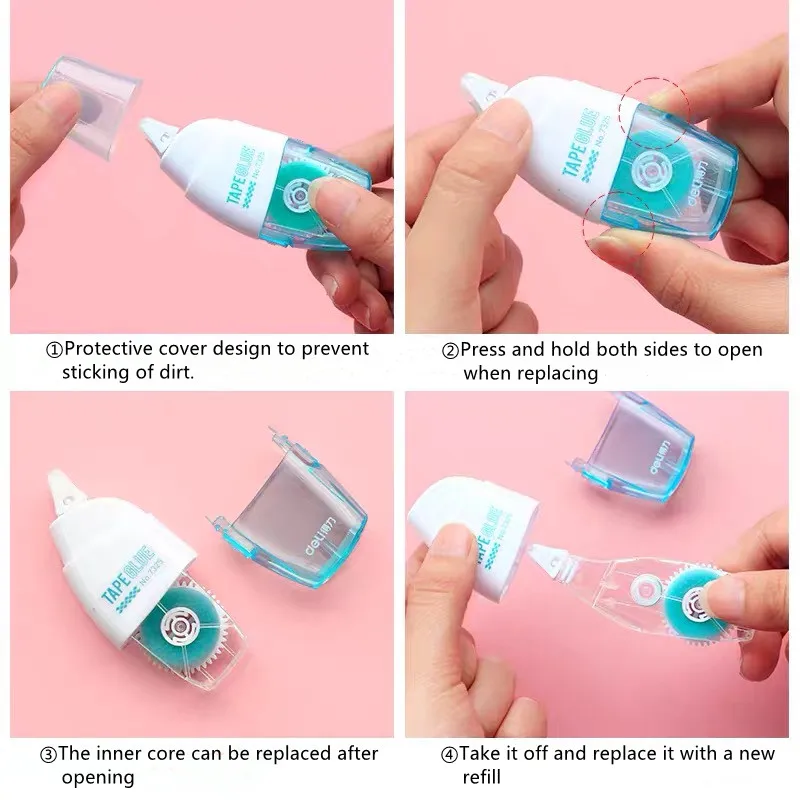 Многоразовая Двухсторонняя клейкая лента DELI, роликовая клеевая лента с заправкой, 6 мм * 8 м, канцелярские принадлежности