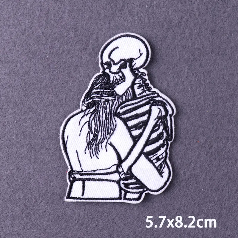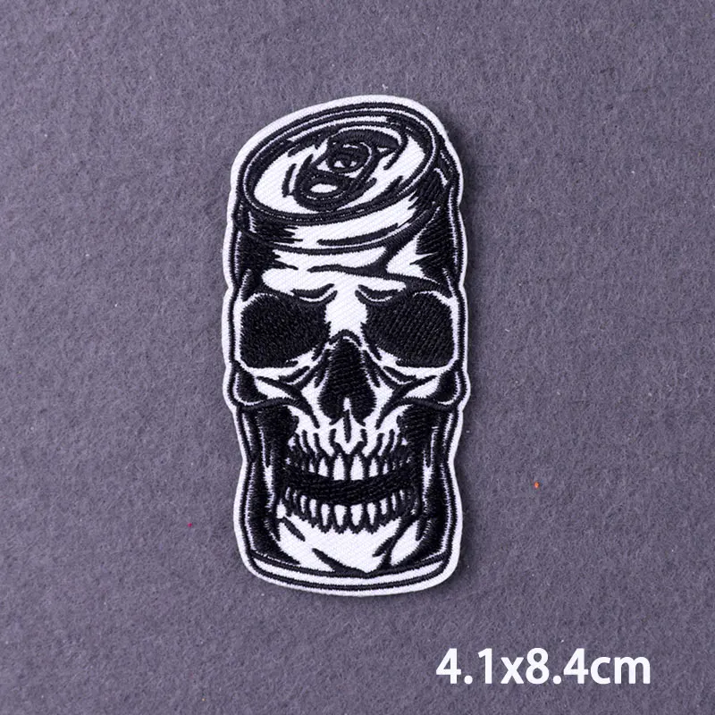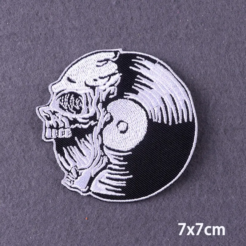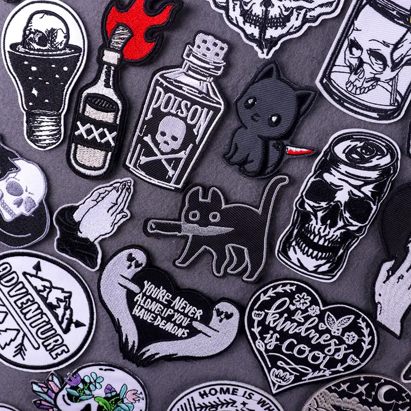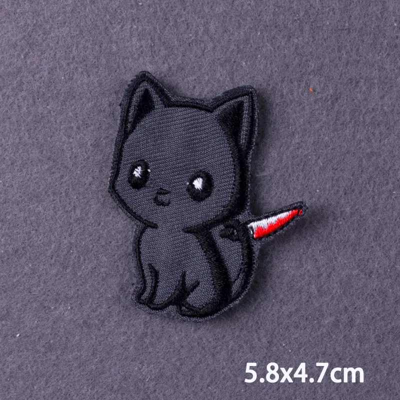 Черно-белые вышитые нашивки с черепом в стиле рок для одежды кошка с ножом термоклейкие нашивки для одежды наклейки термоклейкие значки