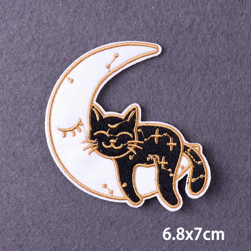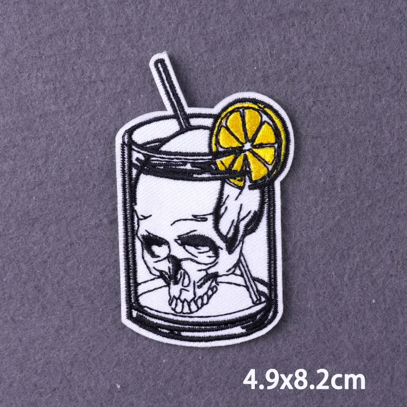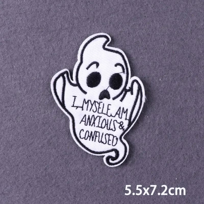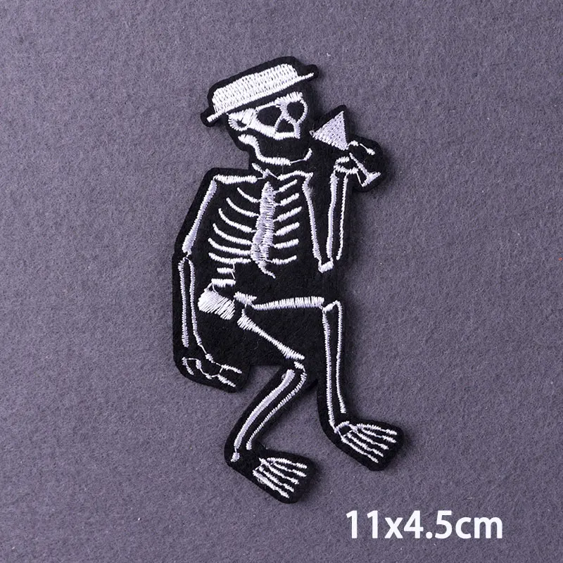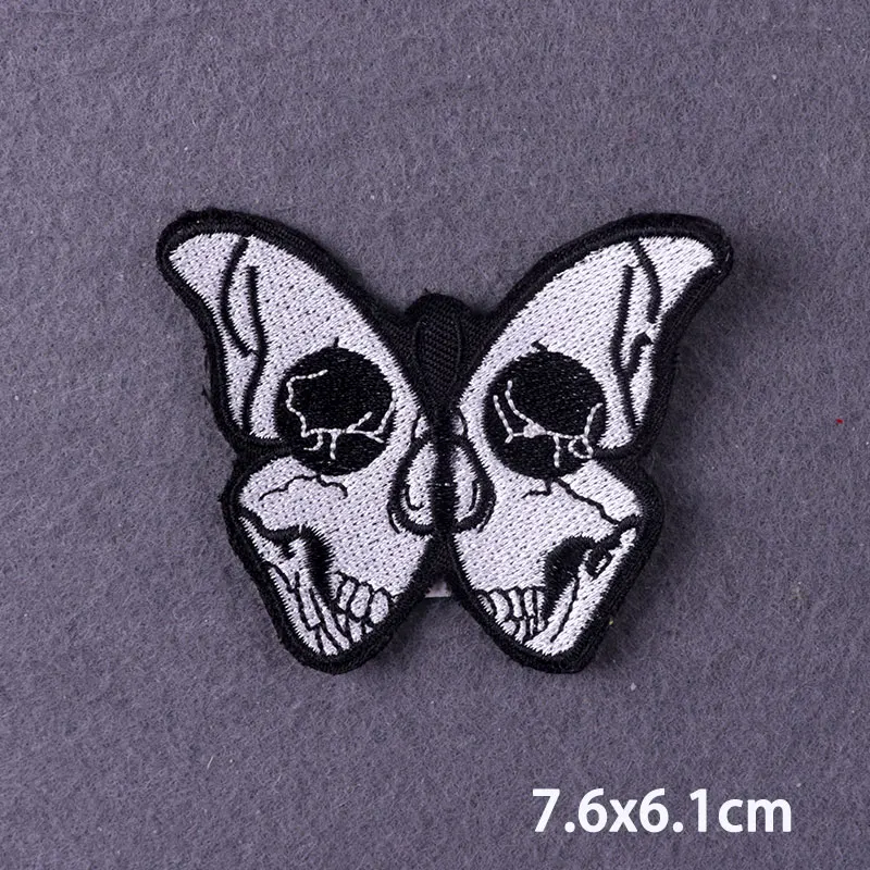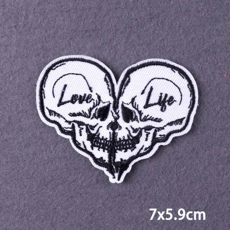 Черно-белые вышитые нашивки с черепом в стиле рок для одежды кошка с ножом термоклейкие нашивки для одежды наклейки термоклейкие значки