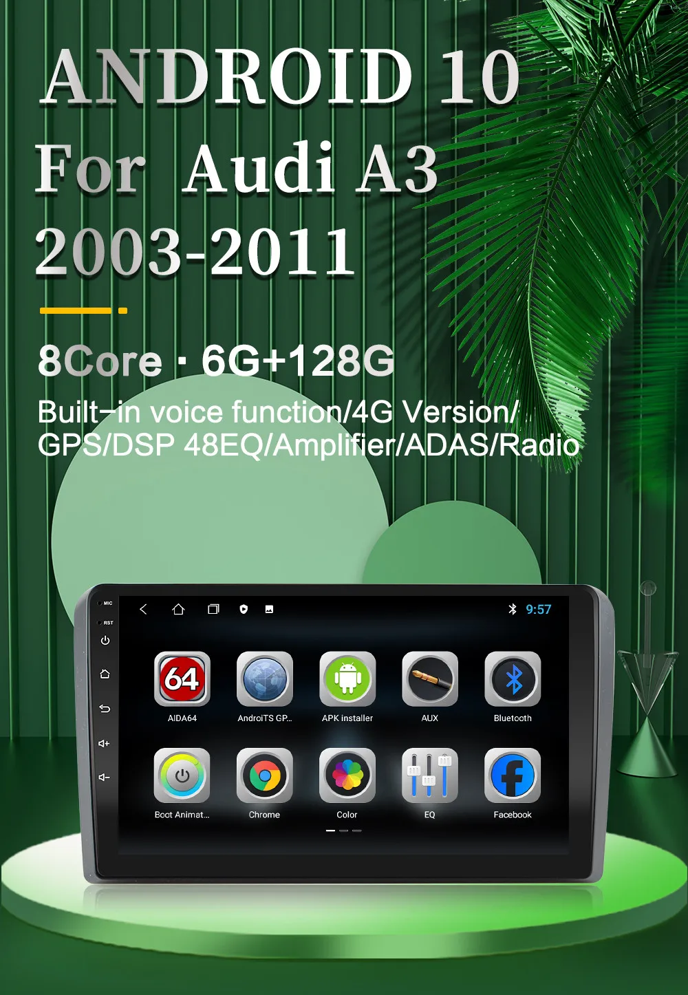 Автомагнитола 2 Din, Android 10,0, Wi-Fi, GPS, Bluetooth, для Audi A3 2003-2011, 2Din, RDS, DSP, IPS, 6G-128G, 8 ядер