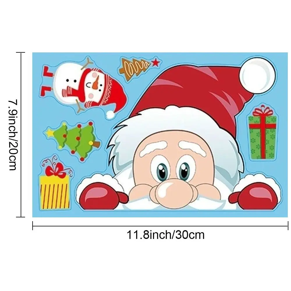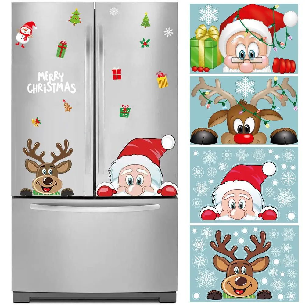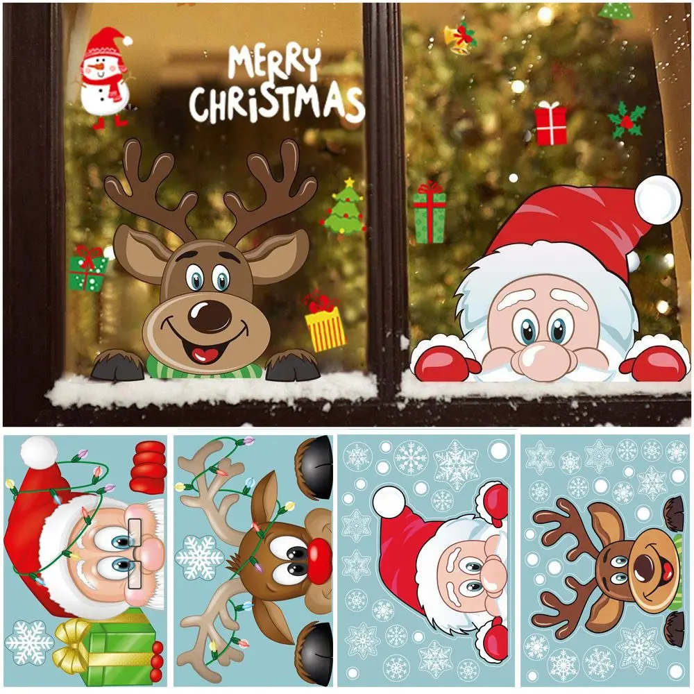 Новогодние наклейки на окно двухсторонние статические стеклянные ПВХ наклейки Санта-Клаус Снежинка стикер на стену в виде оленя новогодний декор комнаты