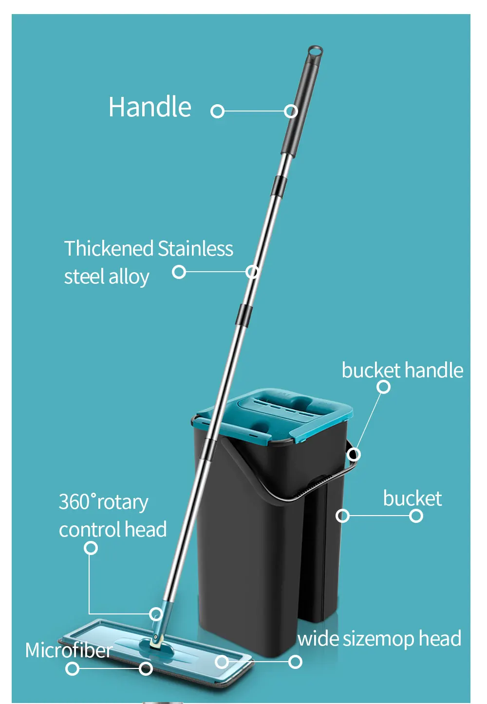 Выдавливаемая швабра с ведром, без рук, плоская швабра, ленивая моющая Швабра для мытья пола, 6 шт., микрофибра, прокладки для влажного и сухого использования, домашние кухонные инструменты