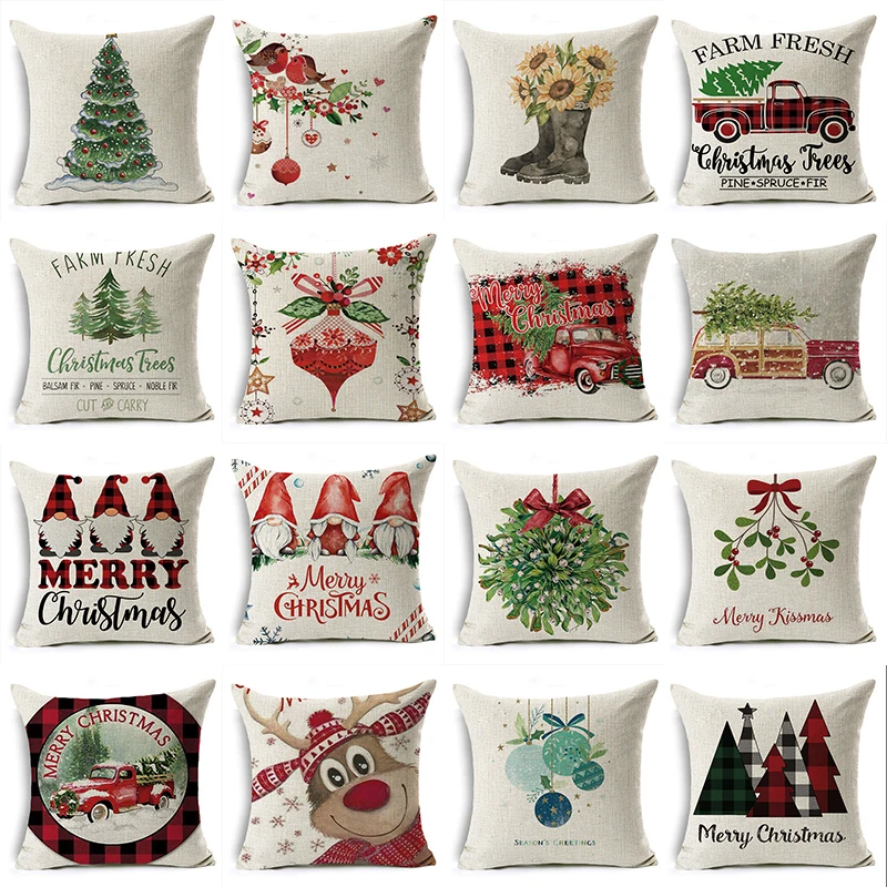 Новогодние и рождественские украшения, наволочки из хлопка и льна с...