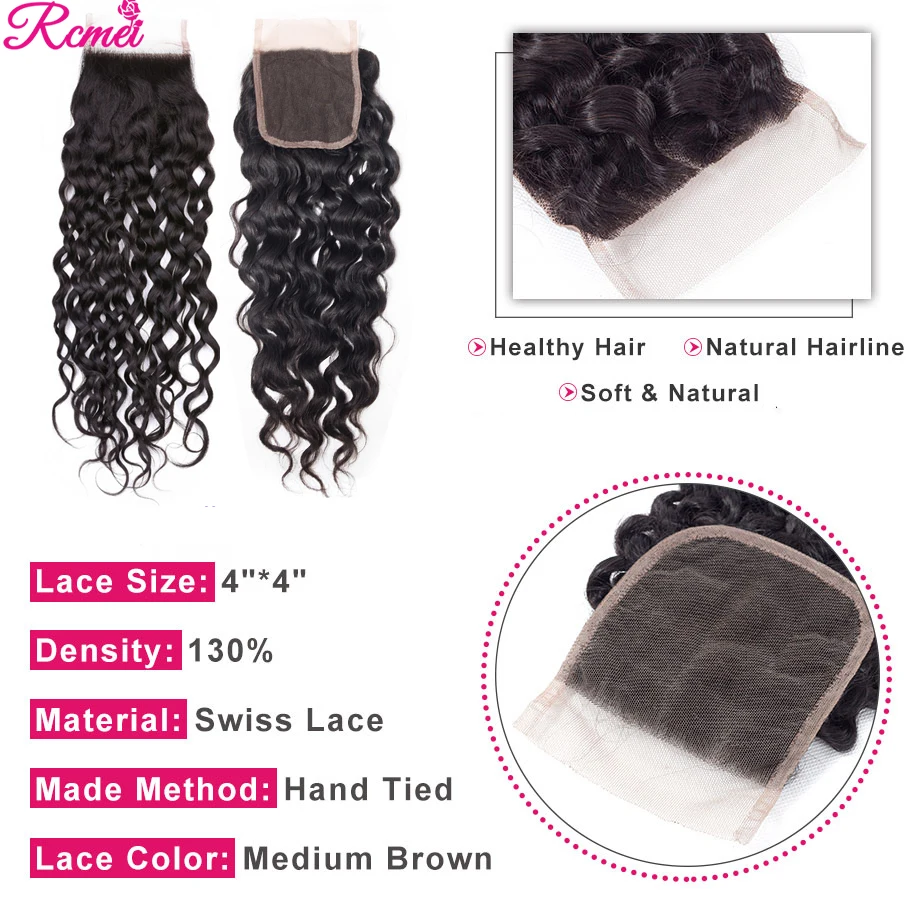Волнистые 3 пряди с застежкой 4x4 бразильские волосы, пучок с кружевной застежкой, человеческие волосы Remy, волнистые волосы для наращивания