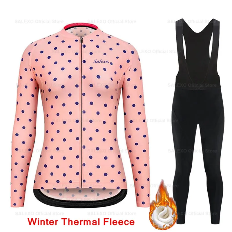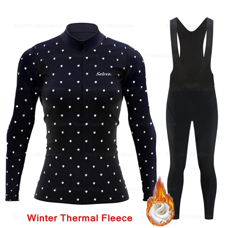 Женский костюм для велоспорта, зимний флисовый костюм с длинным рук...