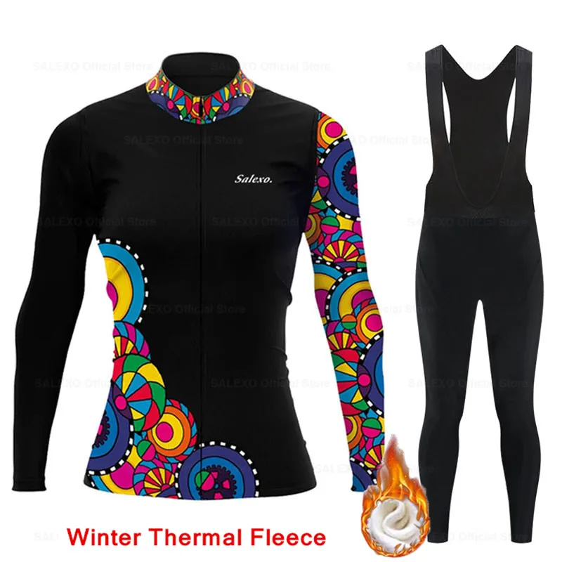 Комплект для велоспорта Женский, с длинным рукавом и флисовой подкл...