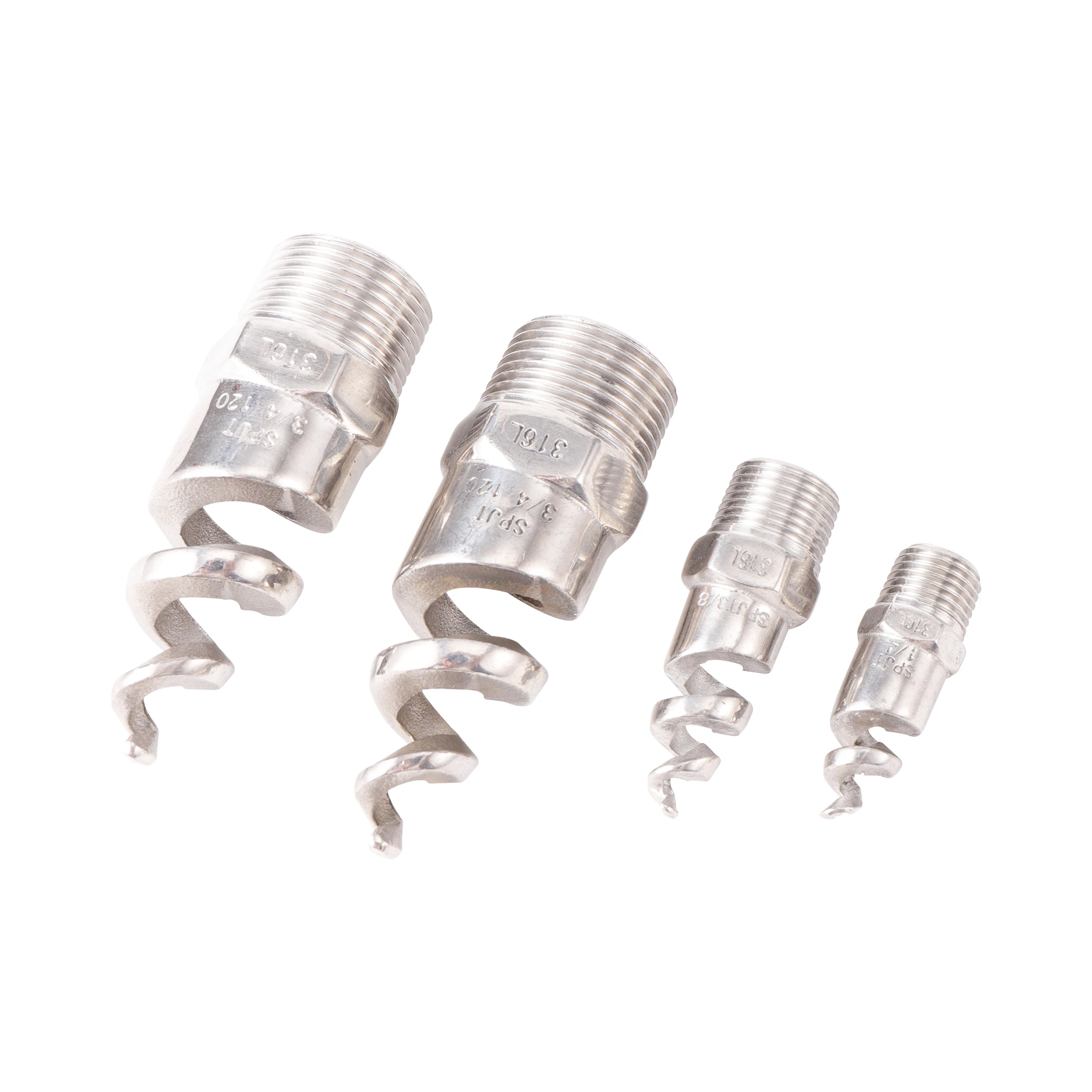 Спиральное сопло является своего рода экологически чистым соплом с компактной структурой, анти-засорением и широким диапазоном применения. После того, как жидкость запуталась и столкнулась с постоянно уменьшающимся спиральным корпусом, она становится крошечной жидкой бусинкой, которая будет выбрасываться для получения полого конуса или цельный конус формы распыления.