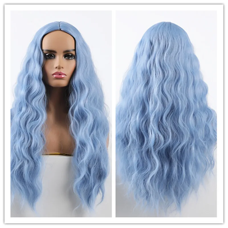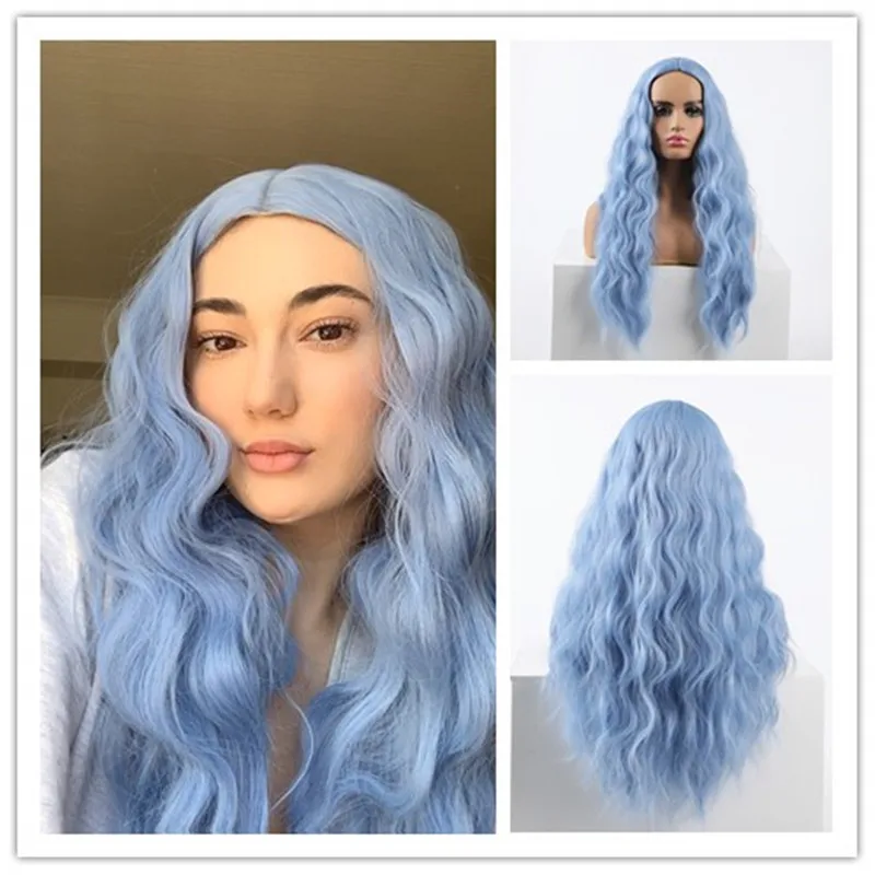 Женский длинный синтетический светильник-голубой парик SuQ с волнистыми волосами для вечеринки, косплея, термостойкий женский парик