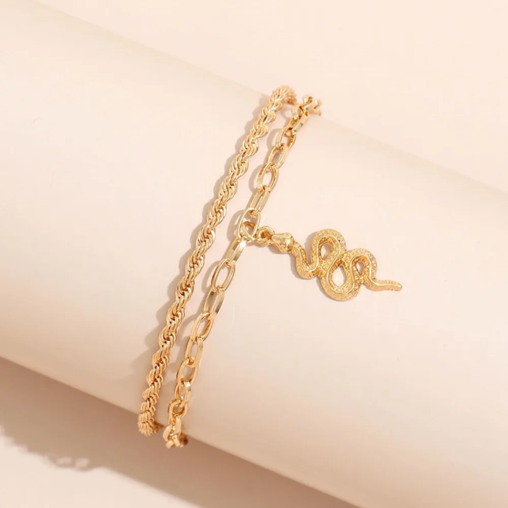 Женский богемный ножной браслет на лодыжку, со змеиным плетением