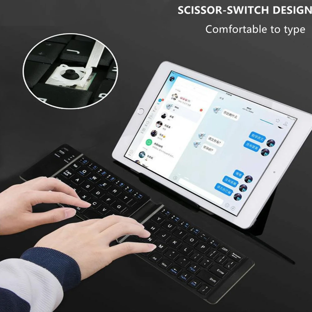Ультратонкая Беспроводная складная мини-клавиатура с Bluetooth, складная перезаряжаемая клавиатура для IOSAndroidWindows, для iPad, планшетов, телефонов