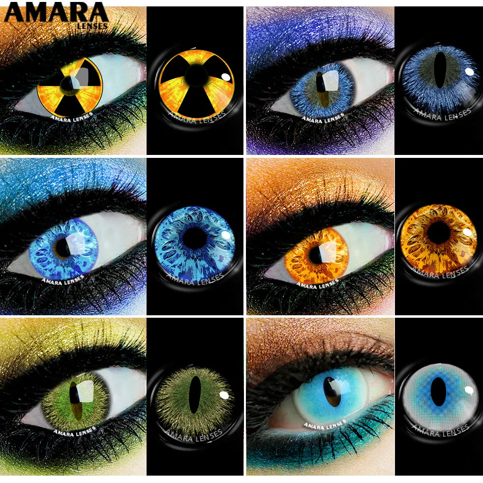 Цветные контактные линзы AMARA для глаз 2 шт. Аниме Косплей цветные линзы ed синие фиолетовые линзы для Хэллоуина контактные линзы Красота Макияж