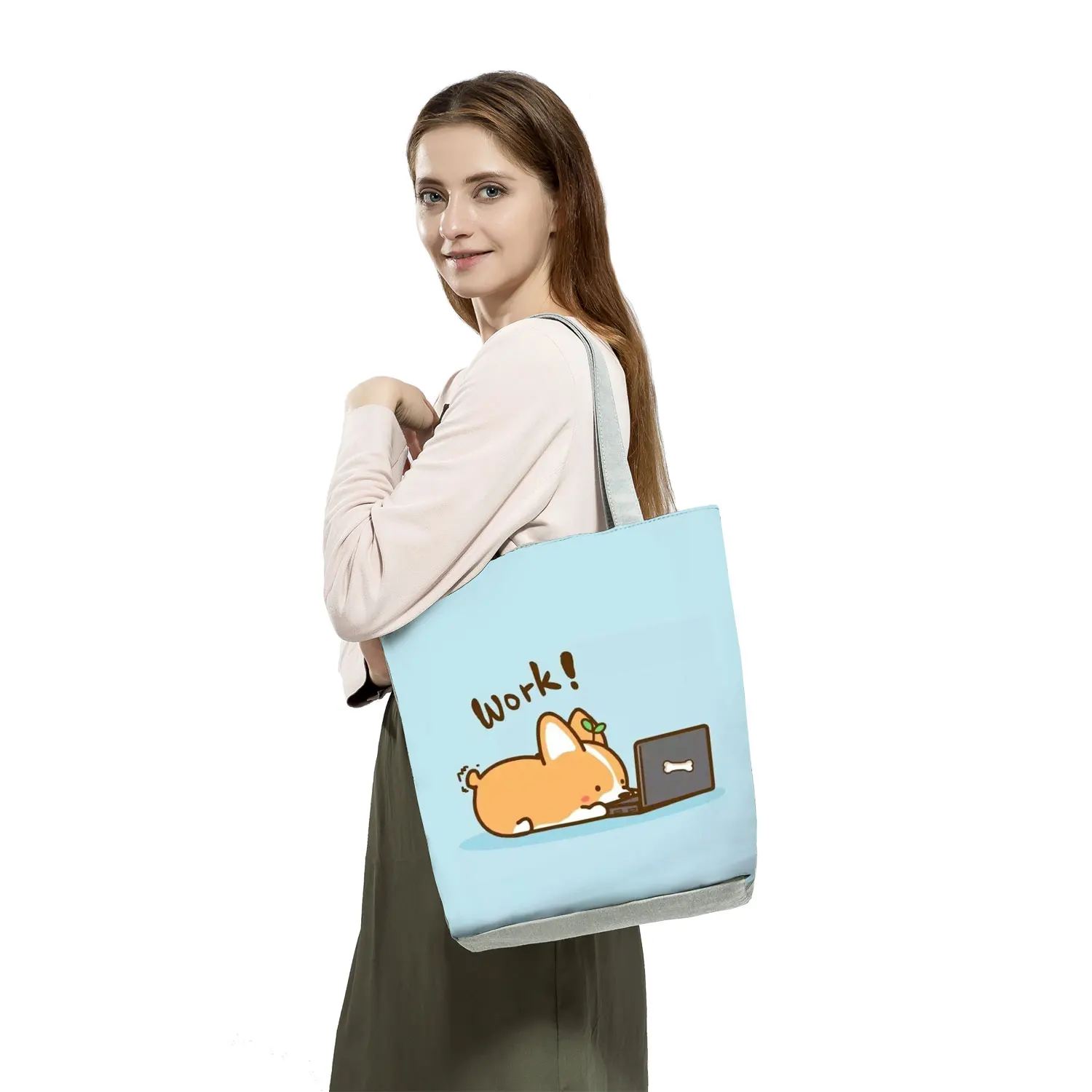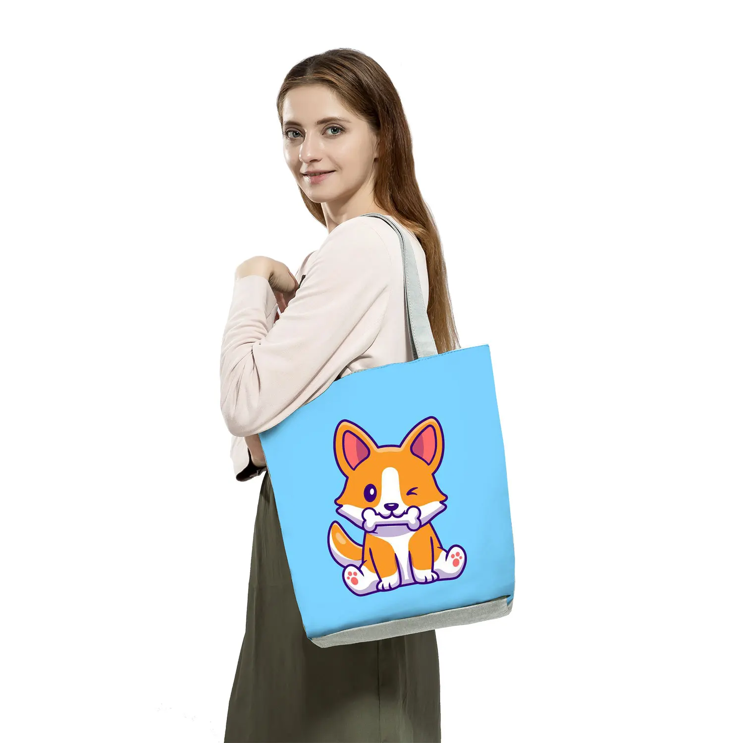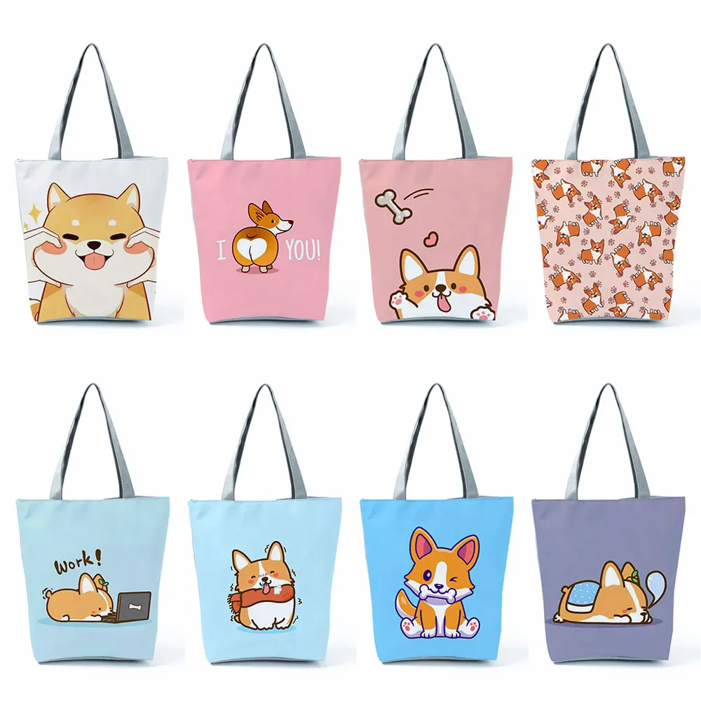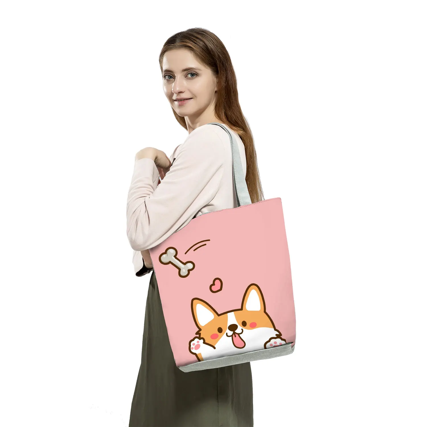Сумка с принтом собаки корги, милая мультяшная модная женская сумка на плечо, вместительная многоразовая сумка для покупок, пляжная сумка для путешествий