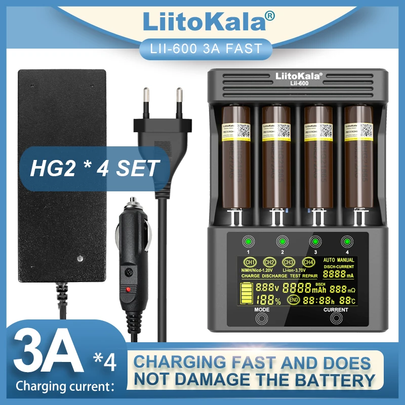 Аккумуляторное зарядное устройство LiitoKala для Li-ion 3,7 V NiMH 1,2 V, подходящее для 18650 26650 21700 AA AAA