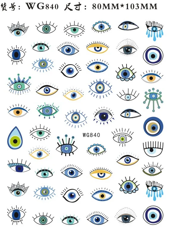 1 Стикеры для ПК, наклейки для дизайна ногтей сглаза, серия глаза, украшения для дизайна ногтей, татуировки для ногтей, фольгированные наклейки, украшения