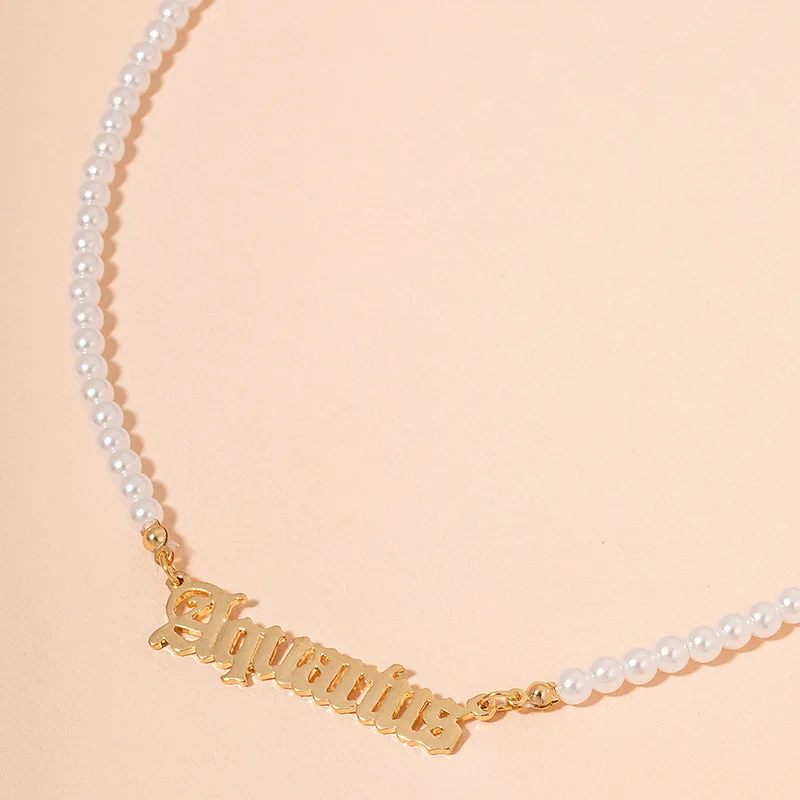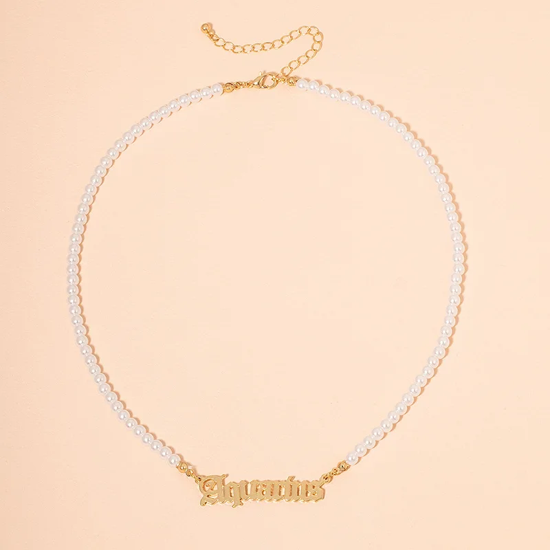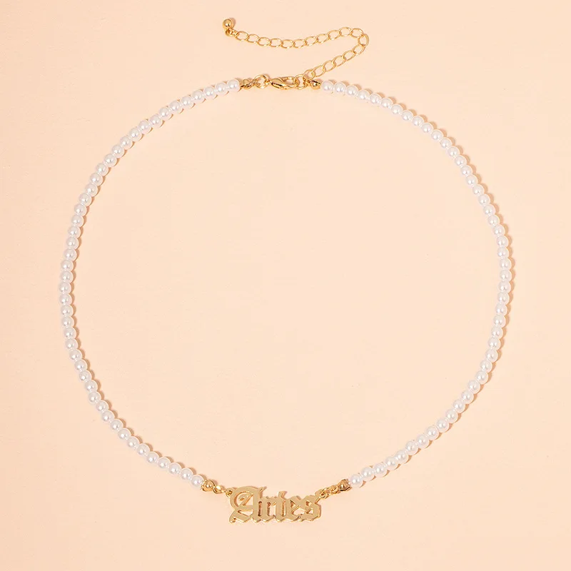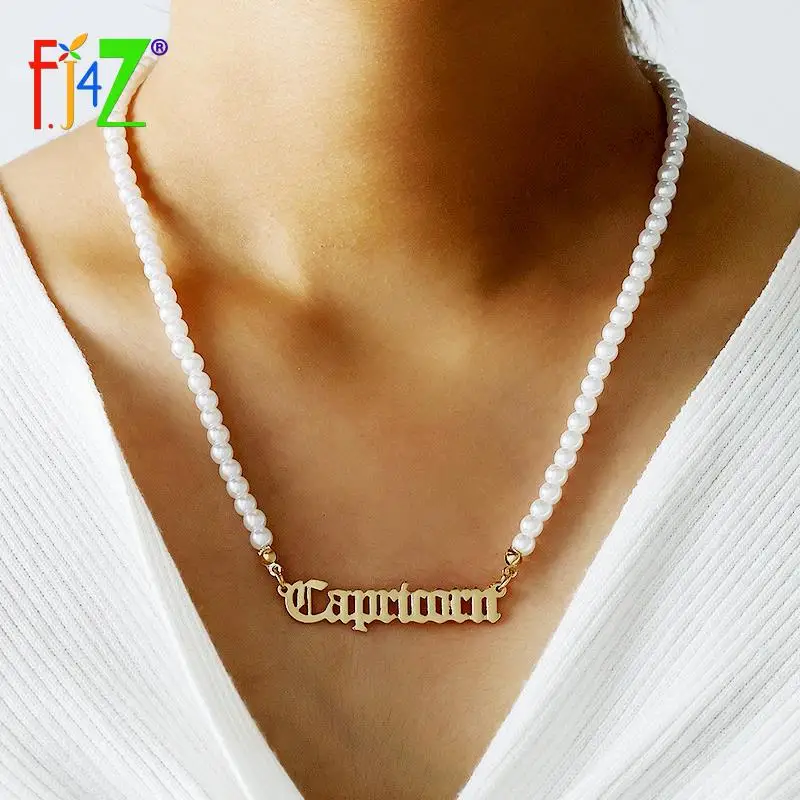 F.J4Z 12 зодиакальное ожерелье для женщин 2021 Трендовое ожерелье с буквенным принтом, ожерелье с искусственным жемчугом и бусинами, женские подарки