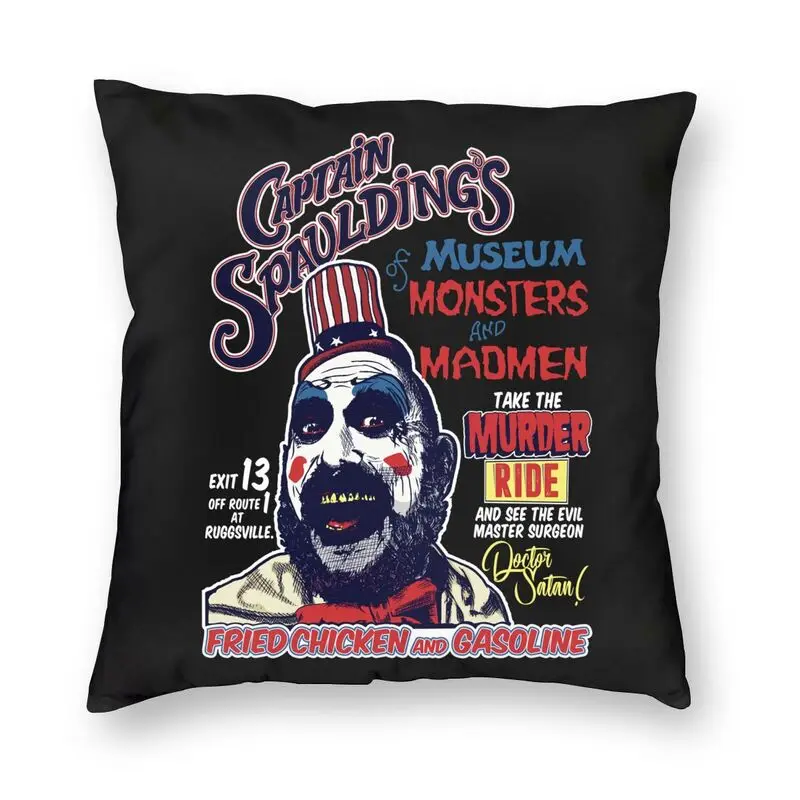 Наволочка для подушки Captain Spaulding 40x40, украшение, 3D печать, ужасная пленка, дом из 1000 трупов, декоративная подушка для автомобиля с двух сторон