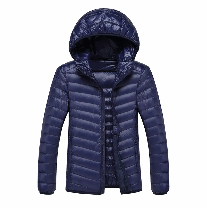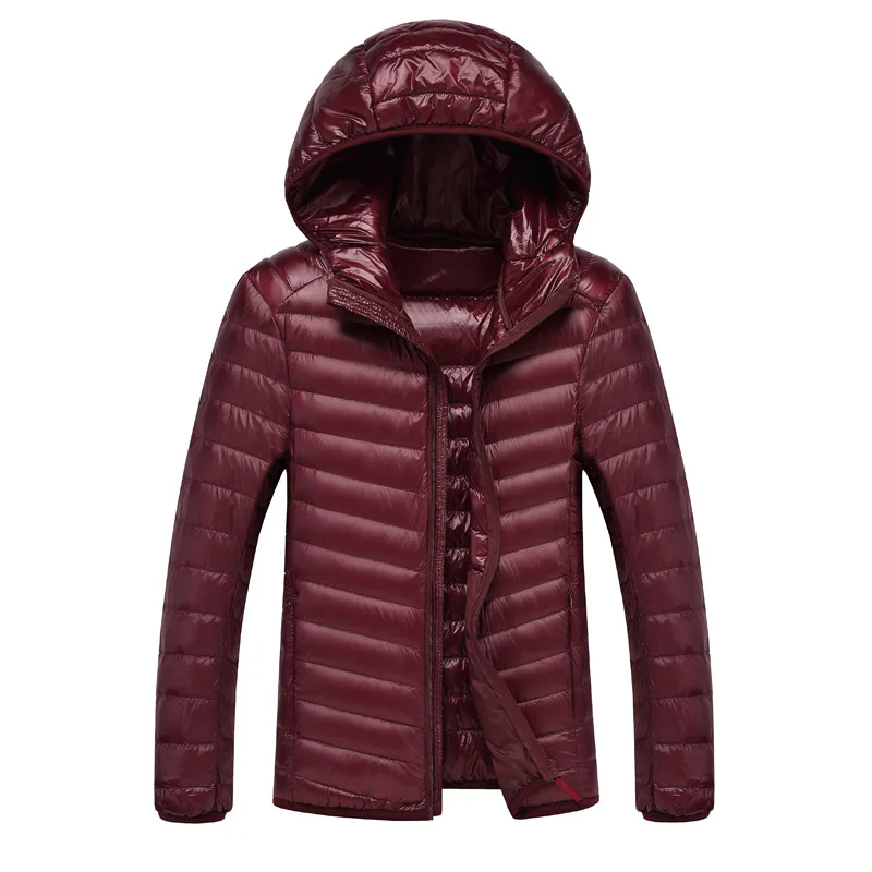 Осенне-зимние мужские легкие куртки с капюшоном, на белом утином пуху