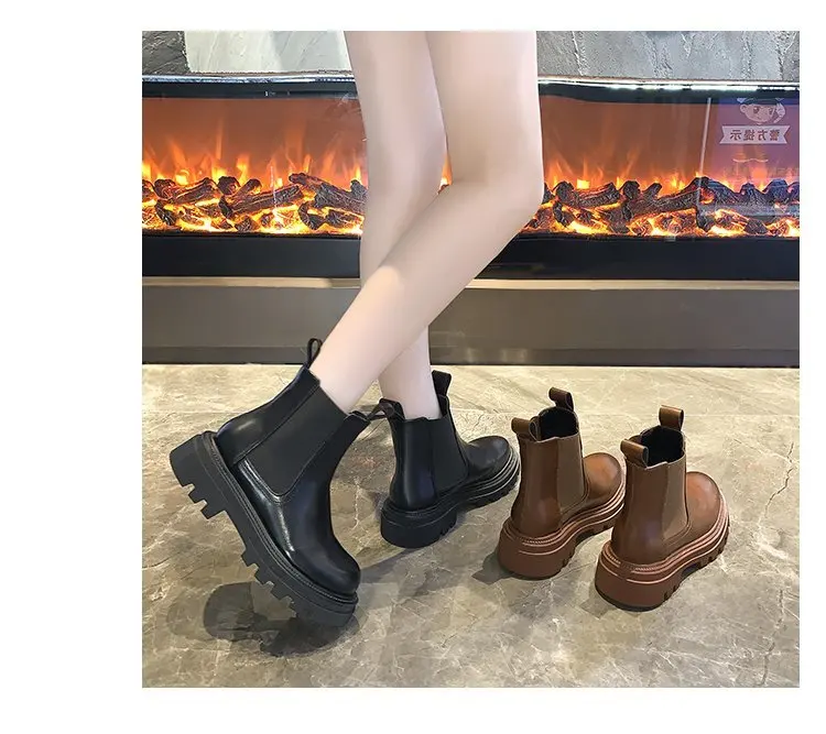 Зимние плюшевые теплые меховые ботинки челси 2022, женские весенние готические панковские ботинки на массивной платформе, мотоциклетные боевые ботильоны, женская обувь