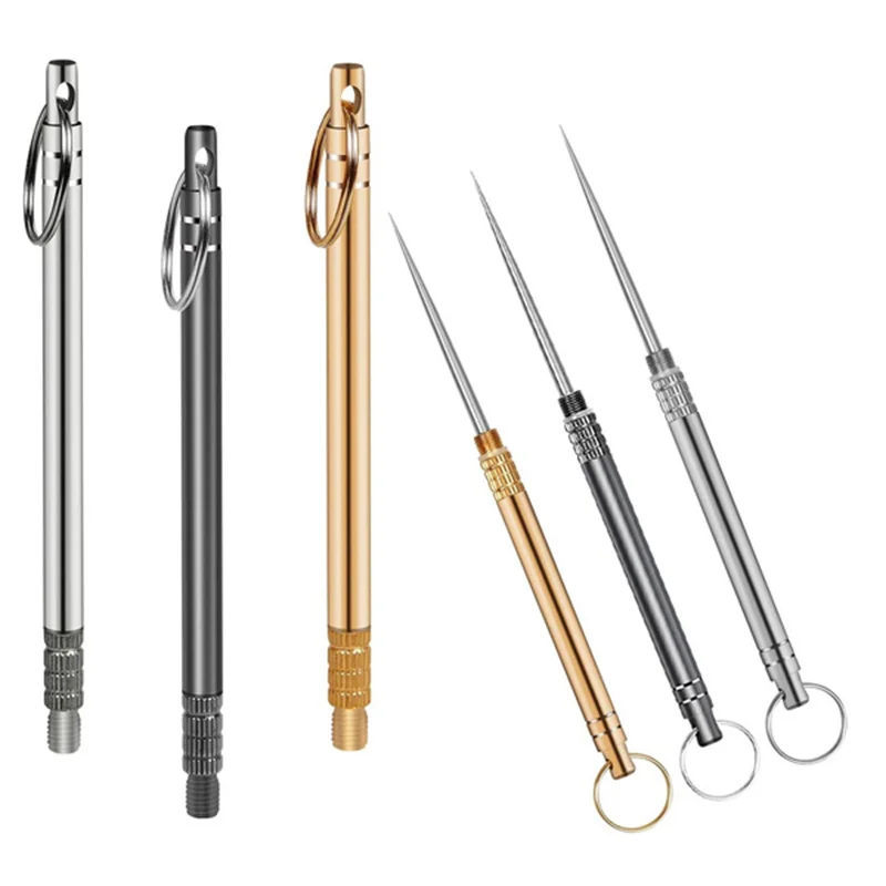 Портативные титановые зубочистки зубная нить металлический Карманный Брелок из нержавеющей стали Многоразовые Зубочистки для зубочистки с резьбой