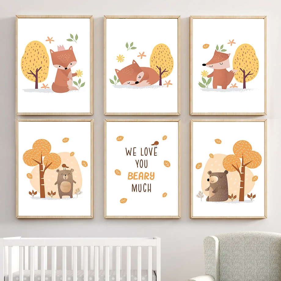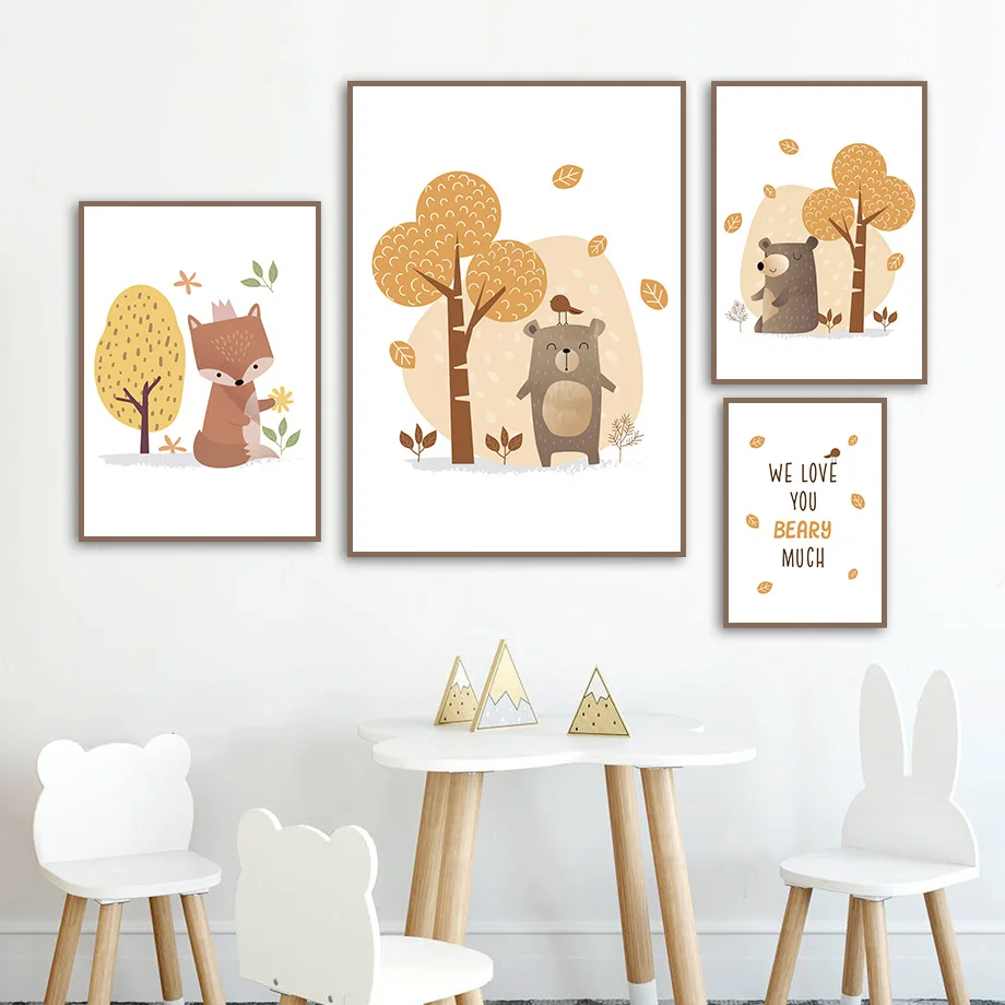 Настенная картина для детской комнаты, животные, лиса, олень, тигр,...