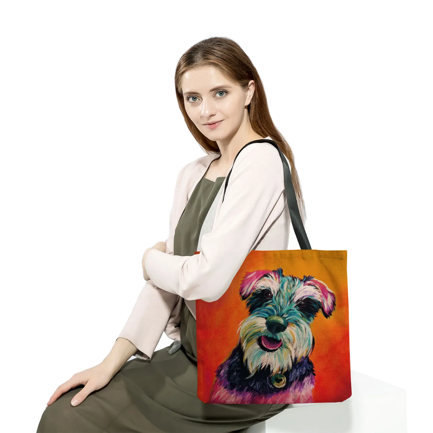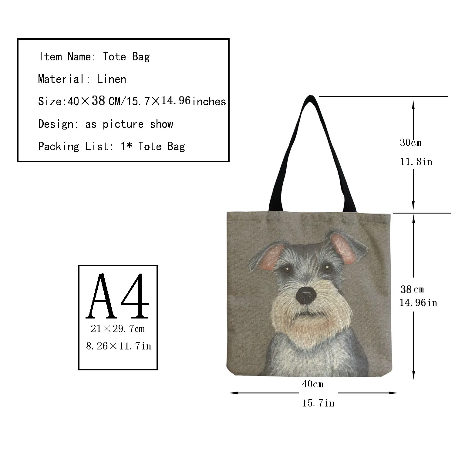 Женская сумка через плечо в Корейском стиле Schnauzer, сумки с рисунком собаки для женщин, повседневные сумки для покупок, большая вместительность, дорожные сумки-тоут