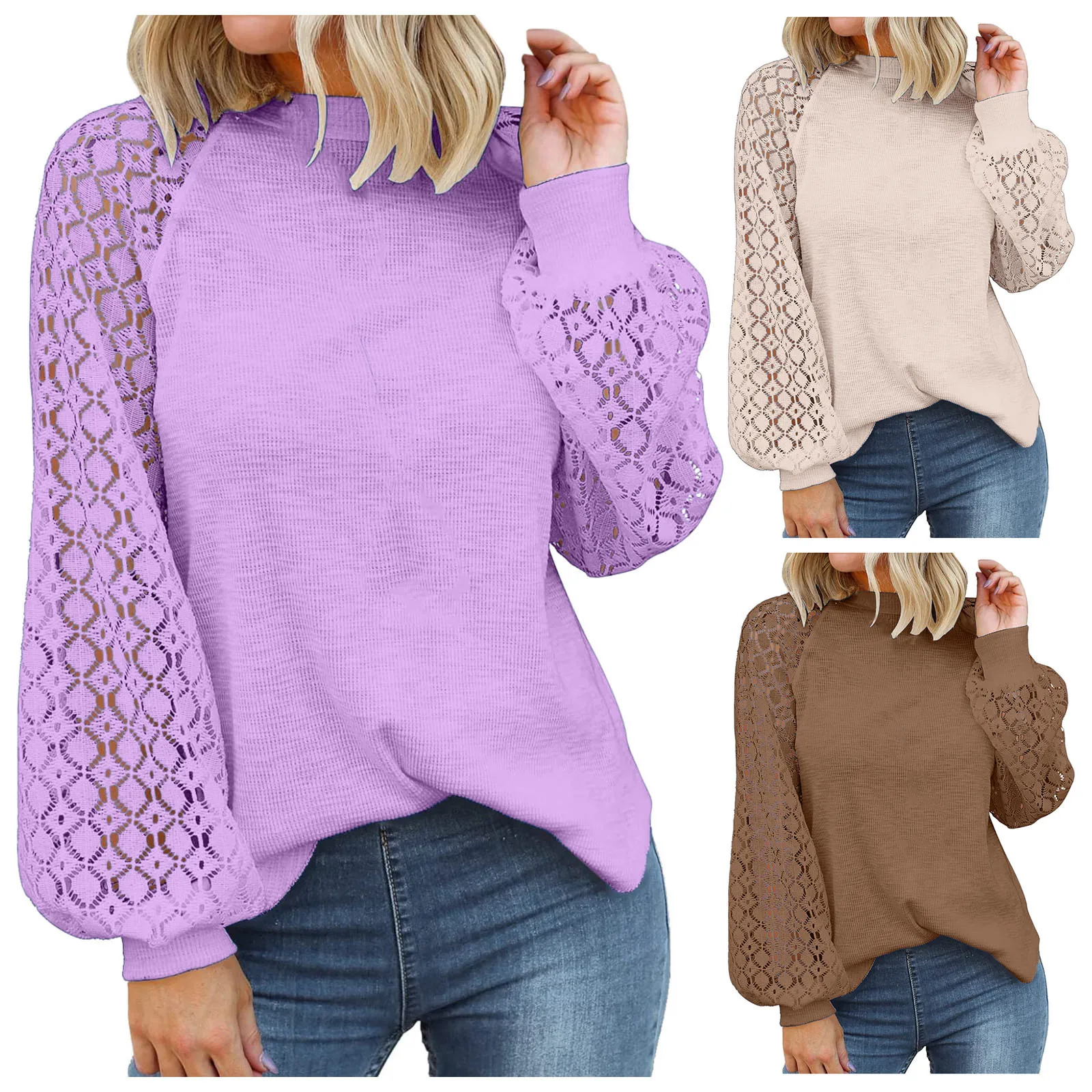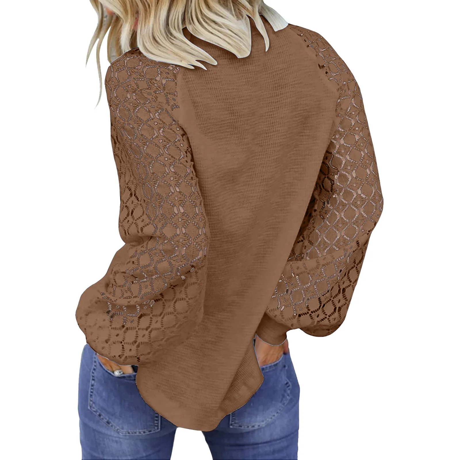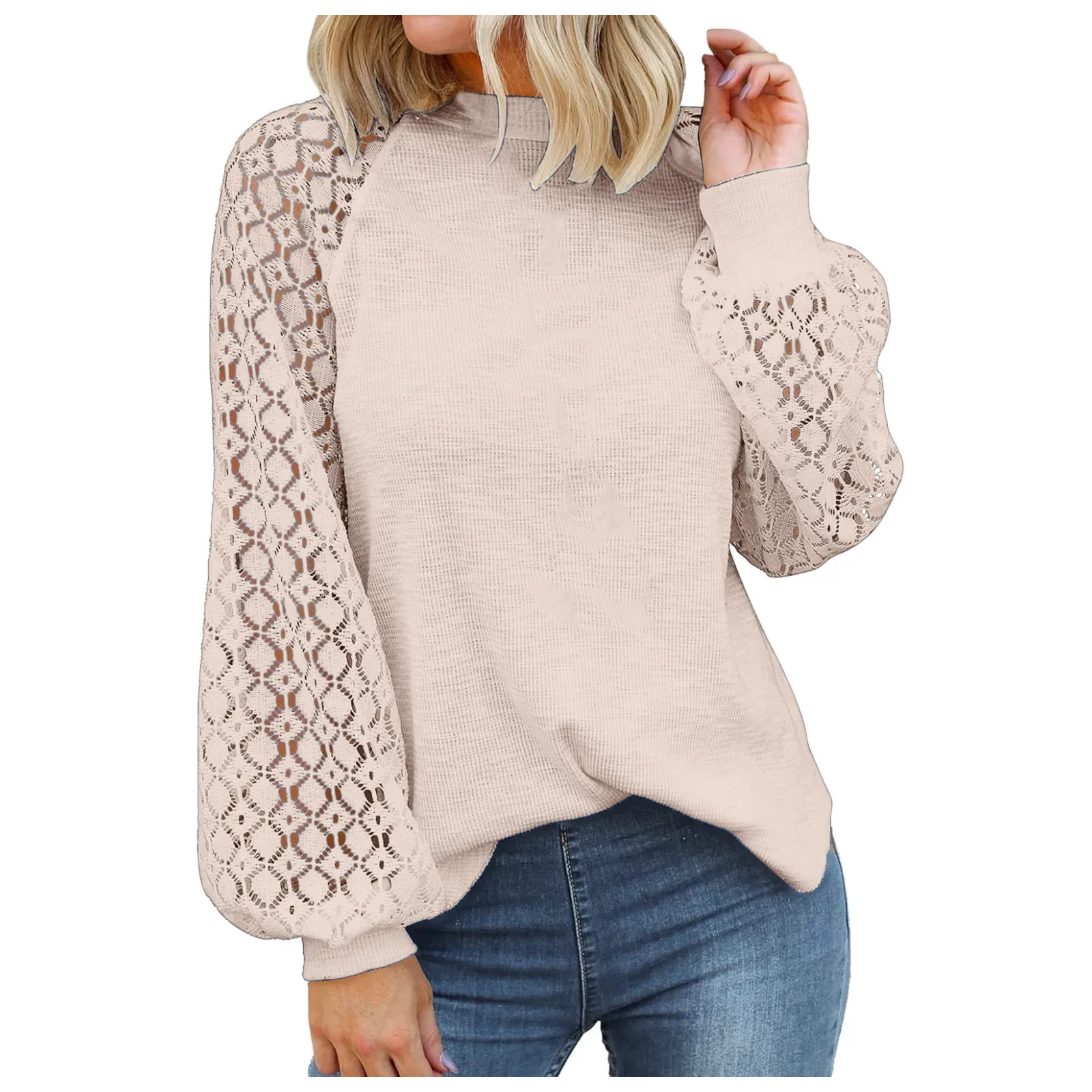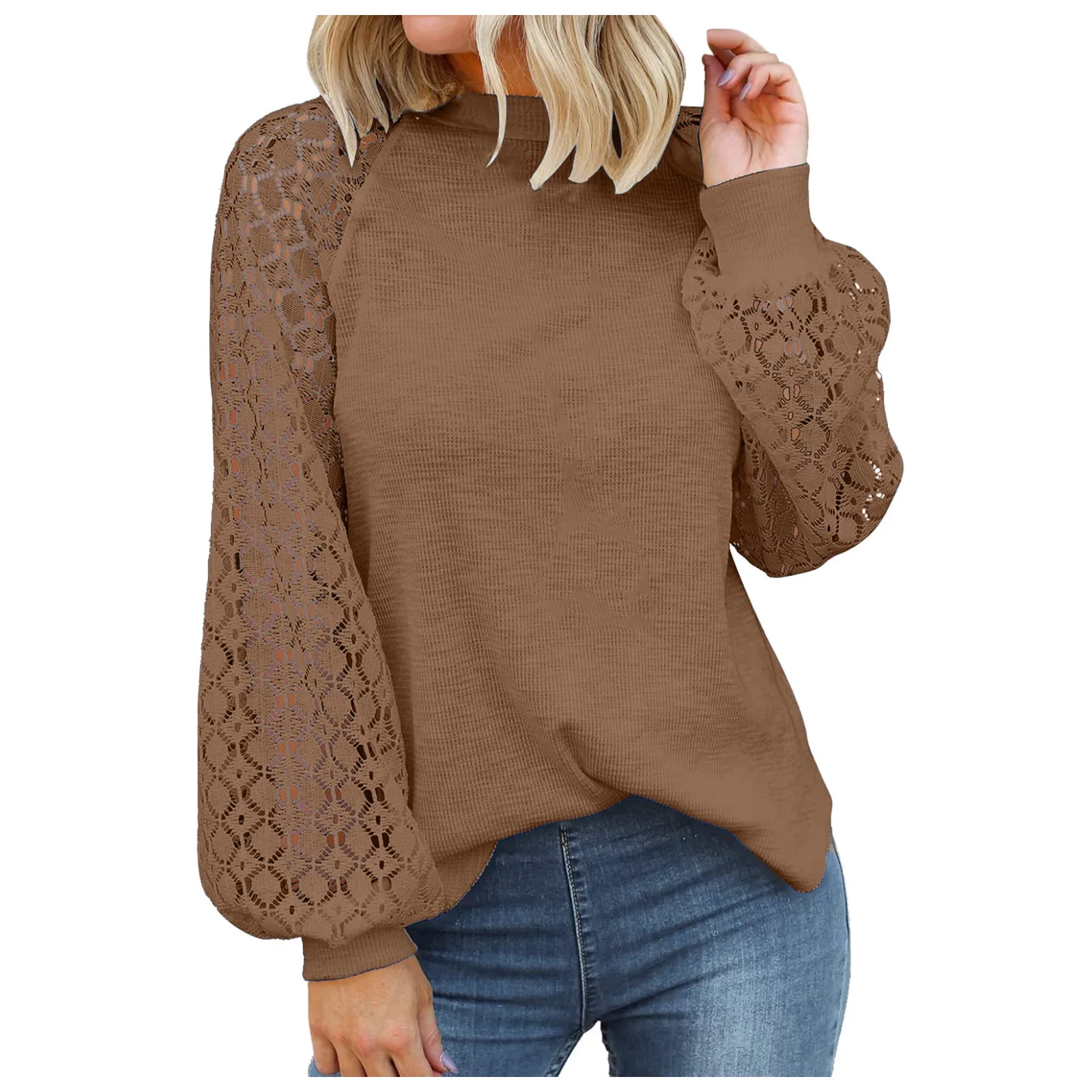Женские блузки с длинным пышным рукавом, повседневные ажурные женск...